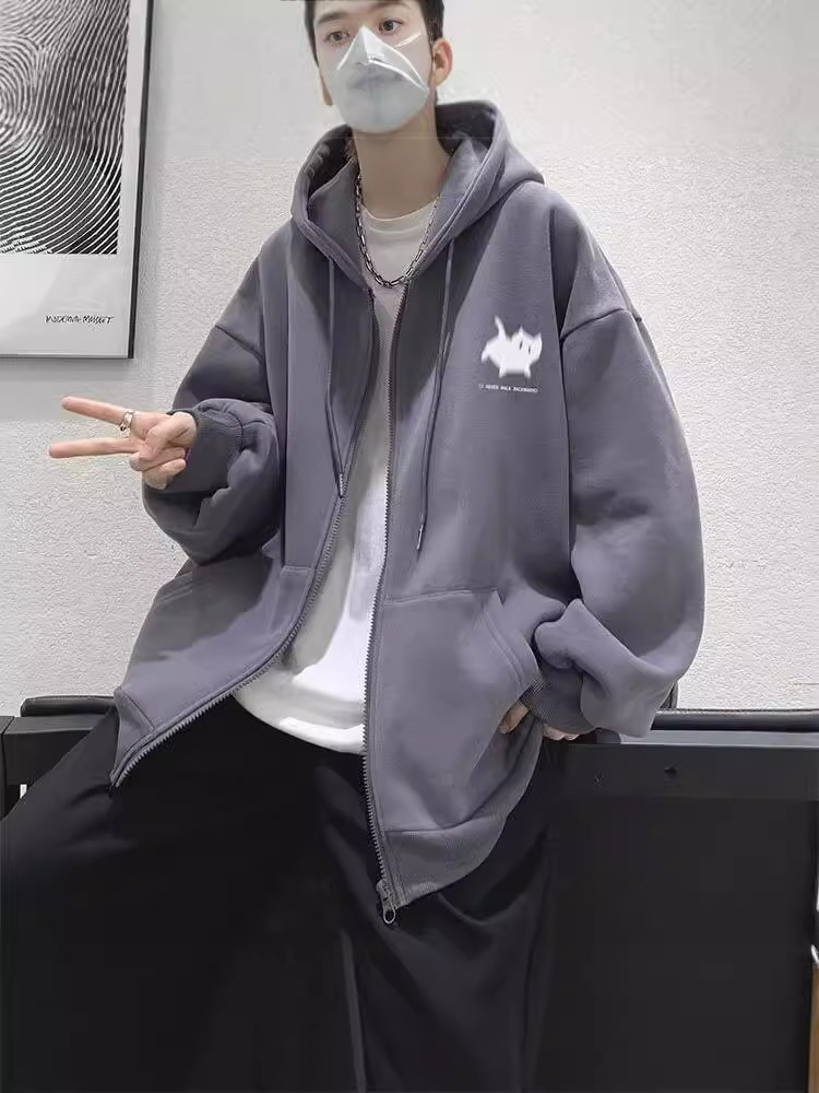 Главная страница > Прилив с принтом свитер с капюшоном для мужчин 2024 весна и осень тонкий топ на молнии американский свободный повседневный кардиган