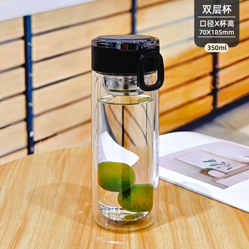 Черный 350 мл (крышка с кольцом) двухслойное стекло с дуговым дном