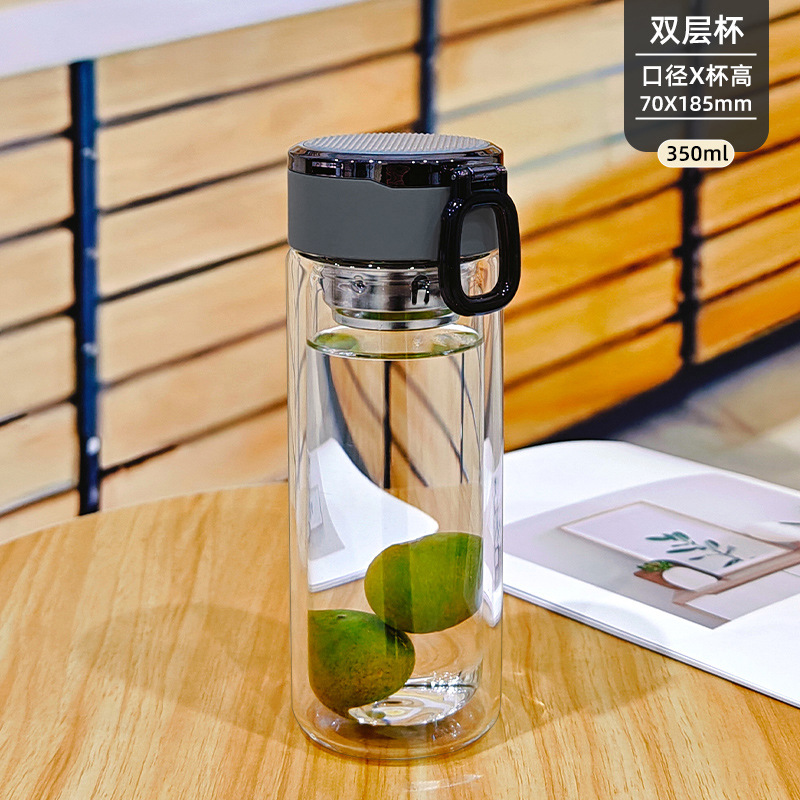 Серое 350 мл (крышка с кольцом) двухслойное стекло с дугообразным дном