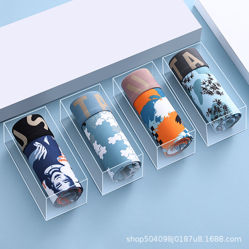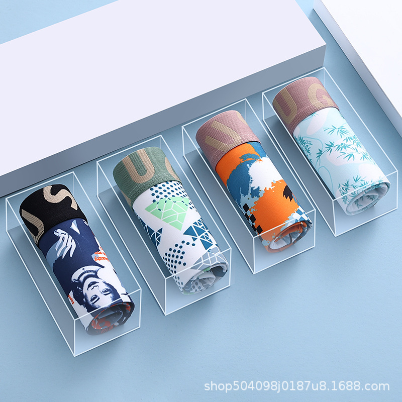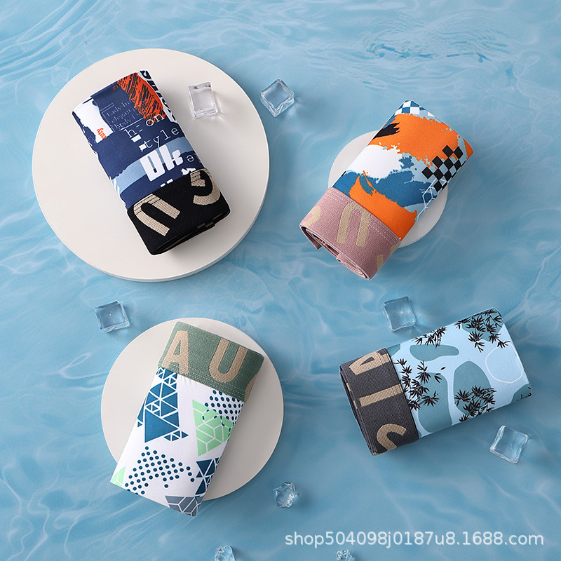 Главная страница > [4 пакета] Мужские летние трусы-боксеры, мужское нижнее белье со средней талией с принтом, мужское дышащее нижнее белье из ледяного шелка