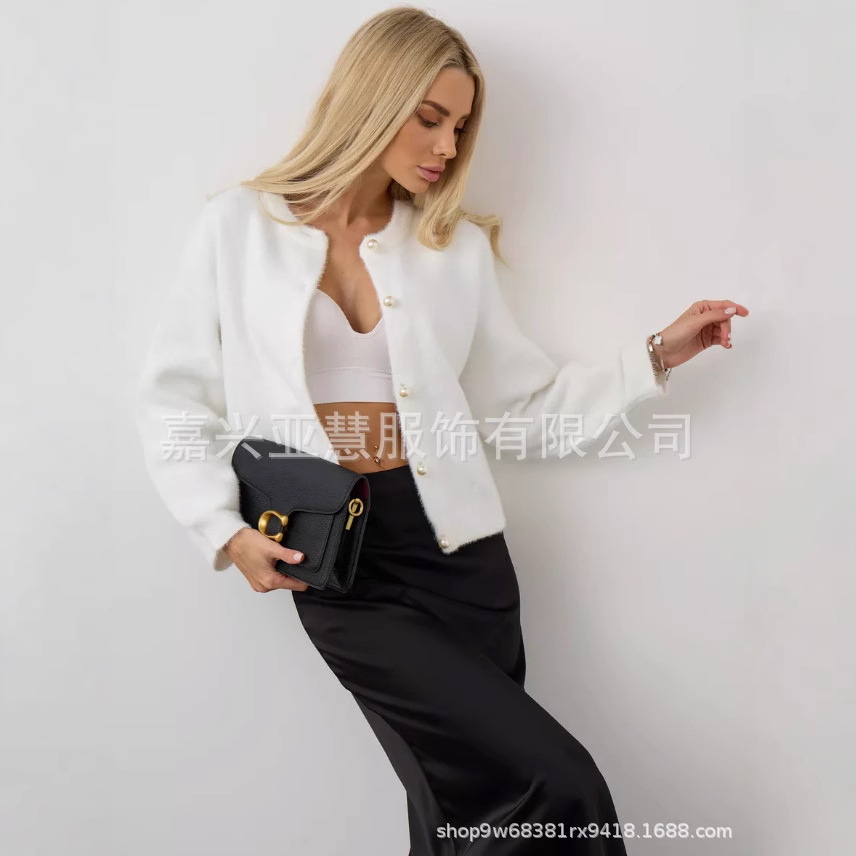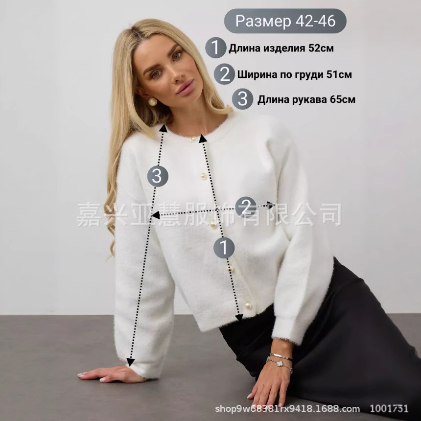 Трансграничный белый вязаный кардиган женский 2025 осень-зима новый свободный плюшевый норковый короткий топ