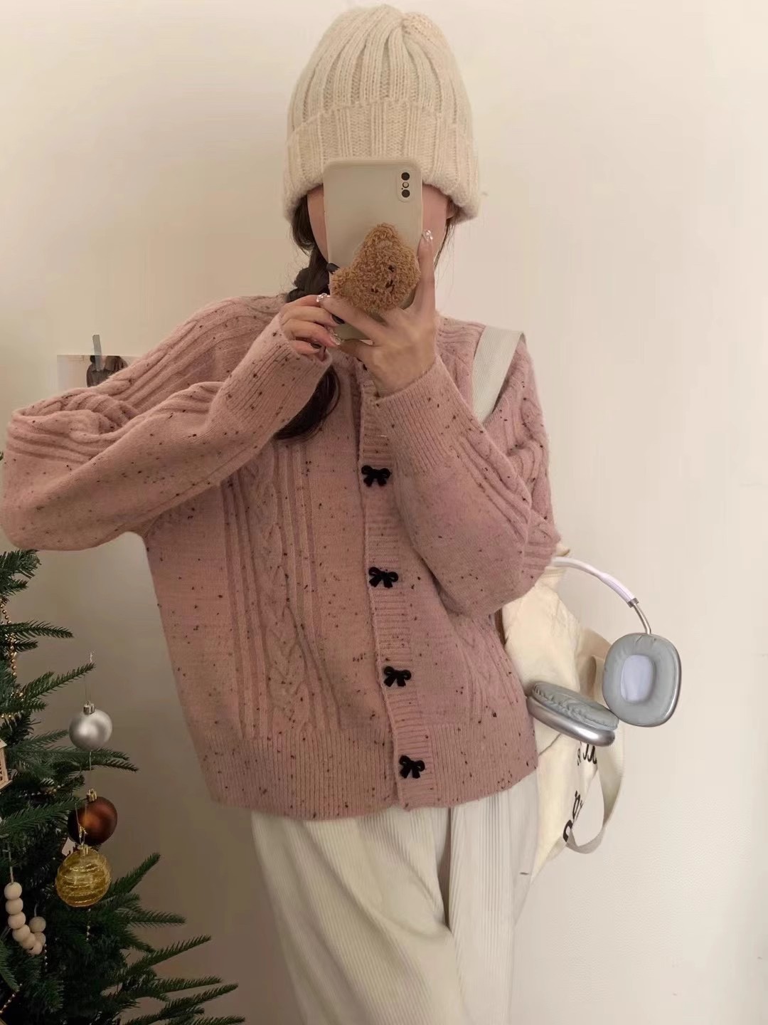 Главная страница > Женский вязаный свитер в корейском стиле с бантом и нишевым дизайном, мягкий и восковой женский вязаный кардиган