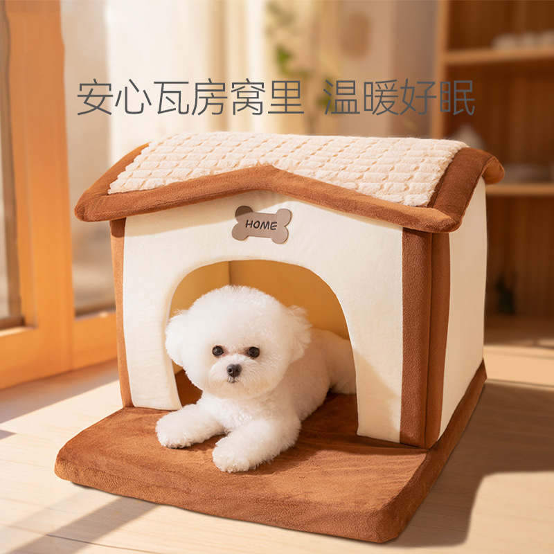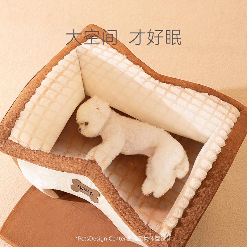 Главная страница > Осенние и зимние кусочки плитки, кости, будка для домашней будки для маленьких и средних собак, плюшевый замок, утолщенная теплая закрытая будка для кошек