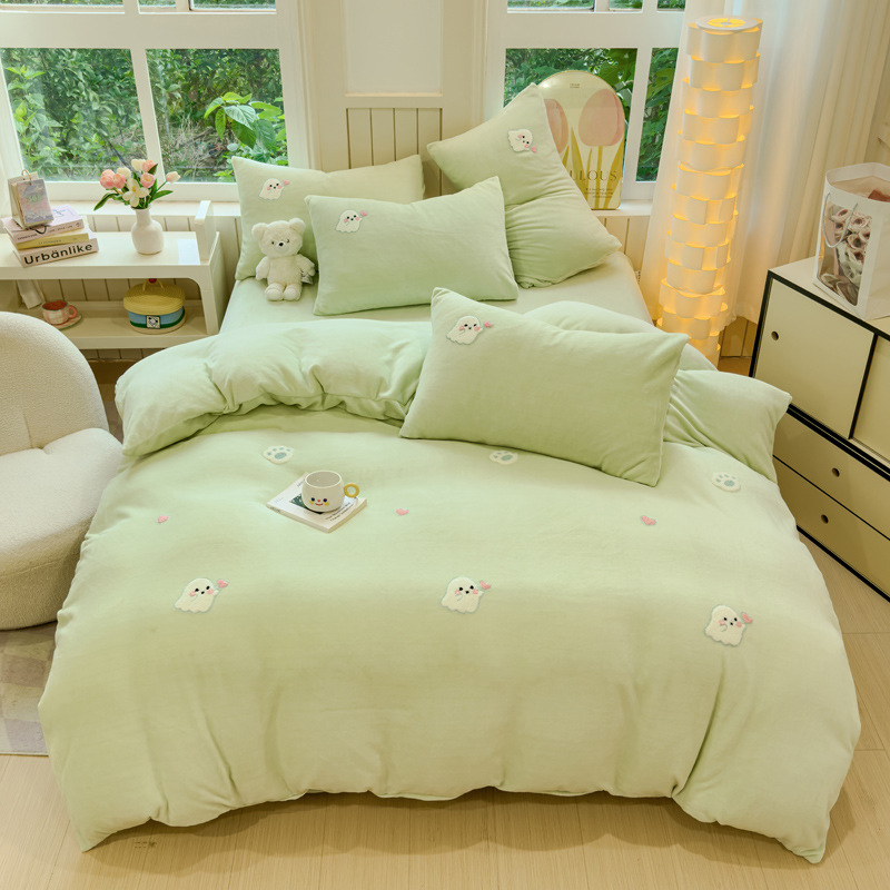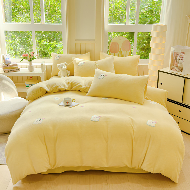 Главная страница > Категория А, набор из четырех частей, осенний и зимний коралловый бархат, толстый фланелевый стеганое одеяло, простыни, набор из трех частей, постельное белье 4
