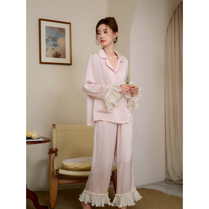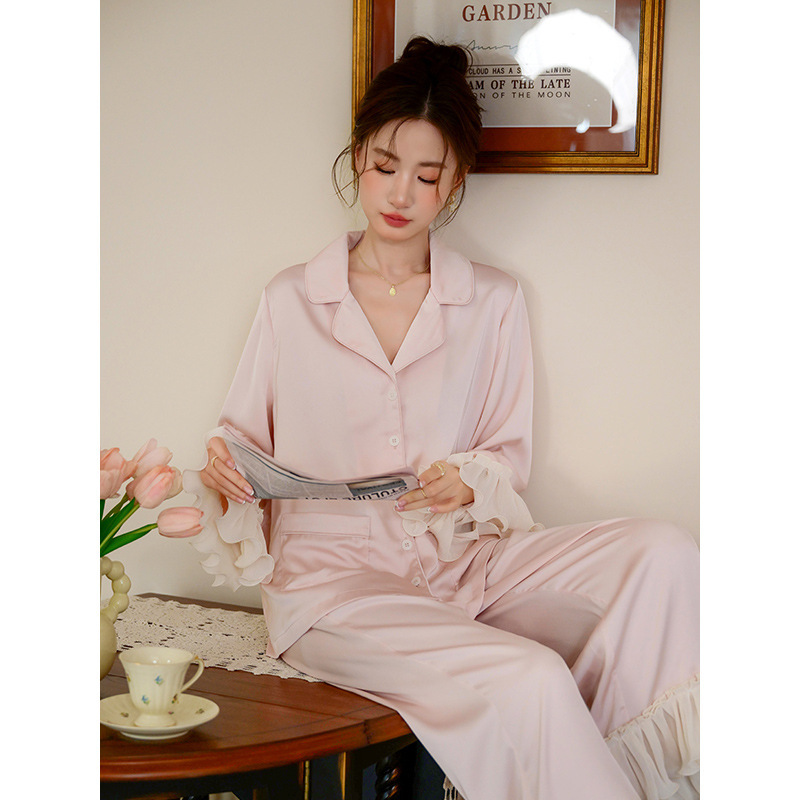 Главная страница > Женские пижамы из ледяного шелка, весна и осень 2023, новый модный свободный костюм с длинными рукавами, милый элитный дизайн, домашняя одежда