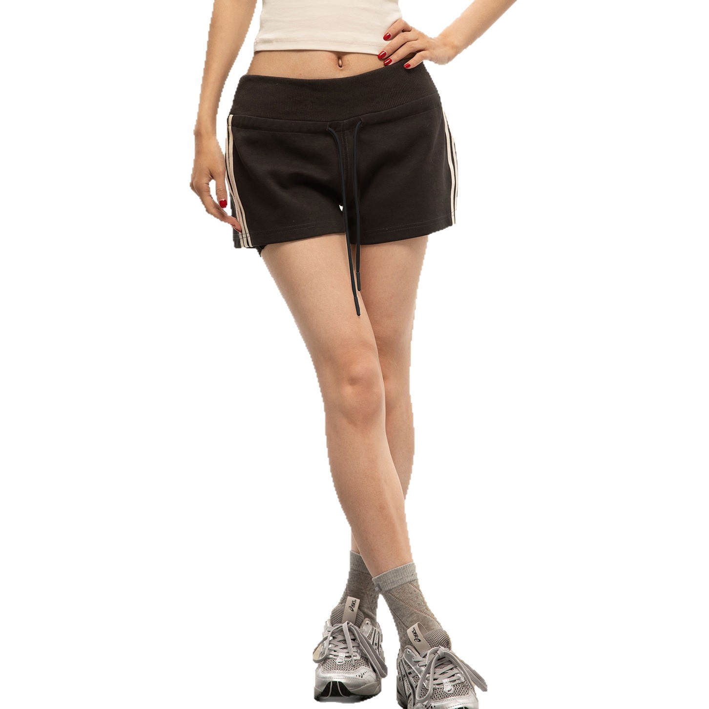 Главная страница > Американские полосатые ретро спортивные шорты для женщин 2025 лето новые спортивные штаны с завязками черные утягивающие шорты для женщин