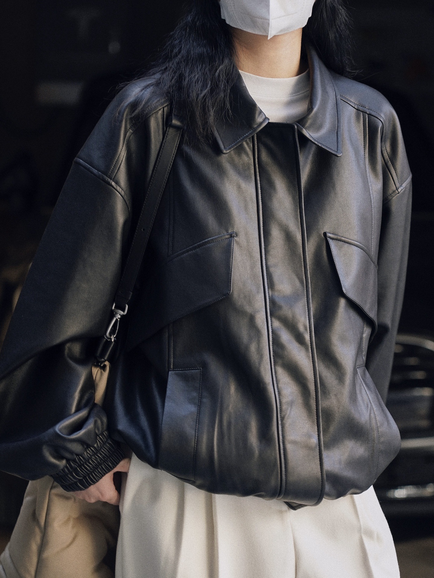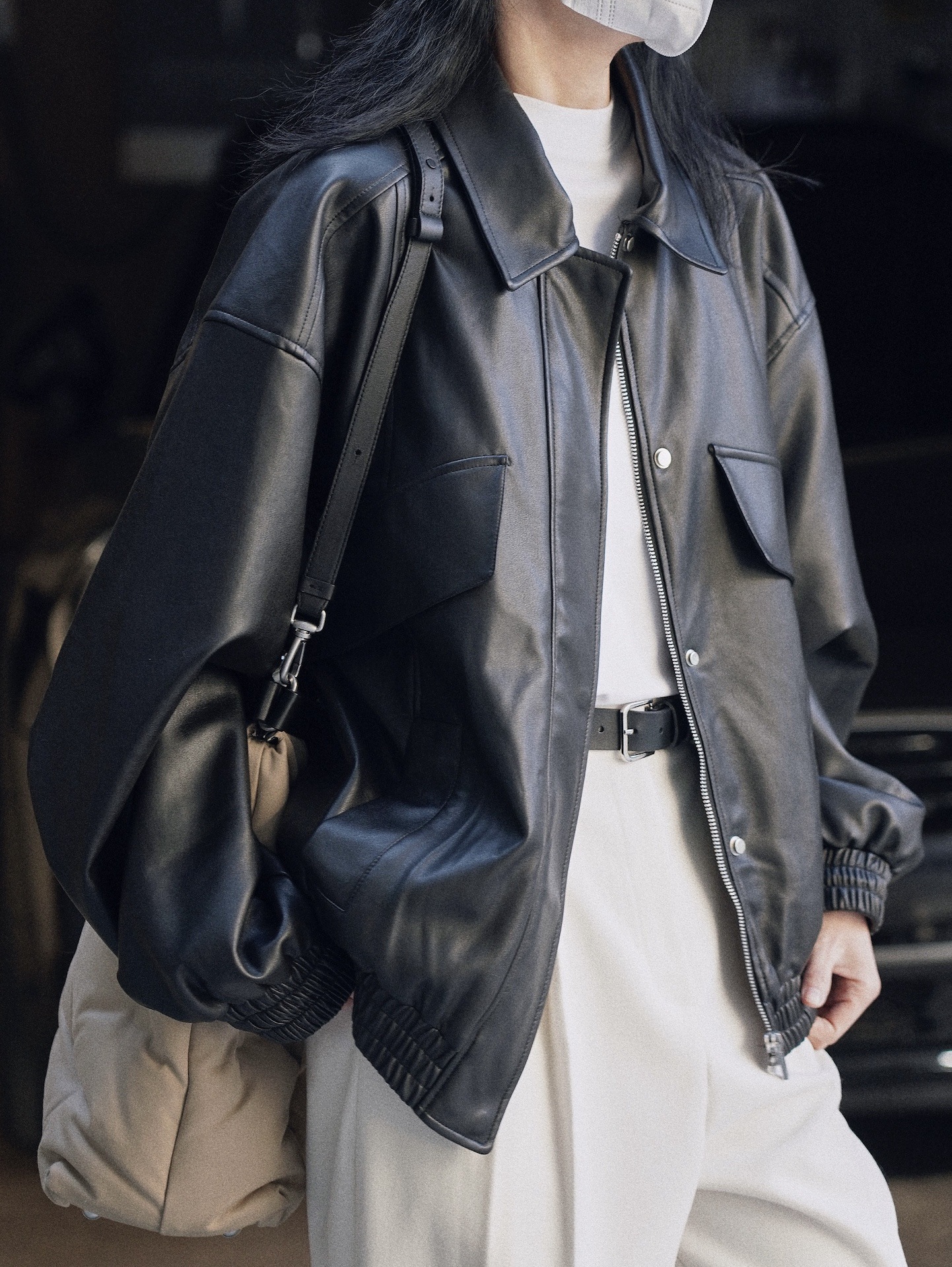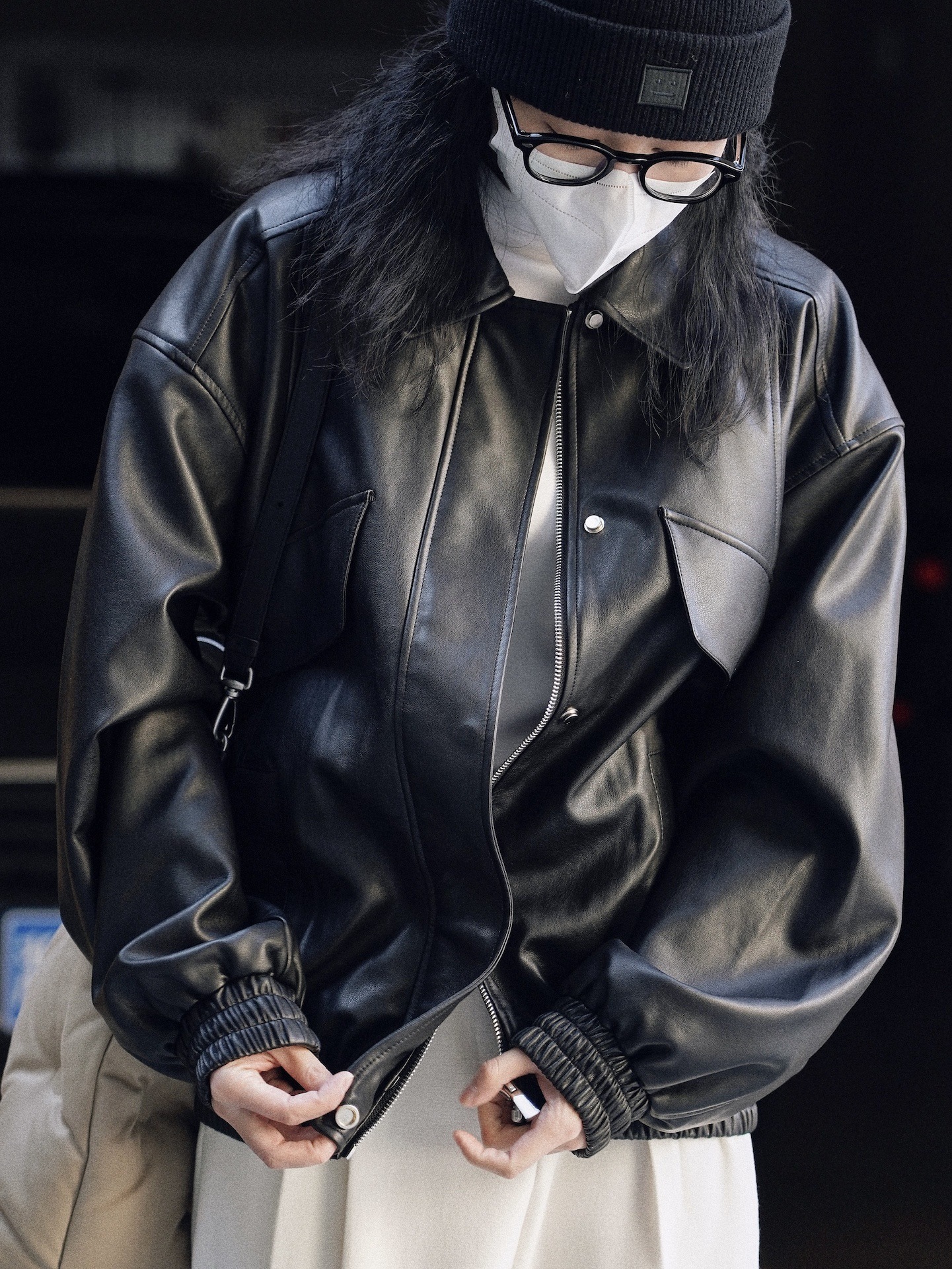 Главная страница > Ранняя осень, новая корейская уличная ретро-куртка из искусственной кожи, свободный силуэт, повседневный черный мотоциклетный топ для женщин