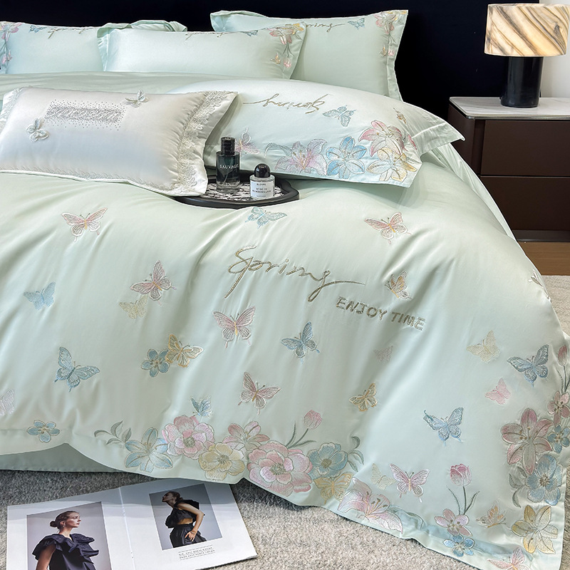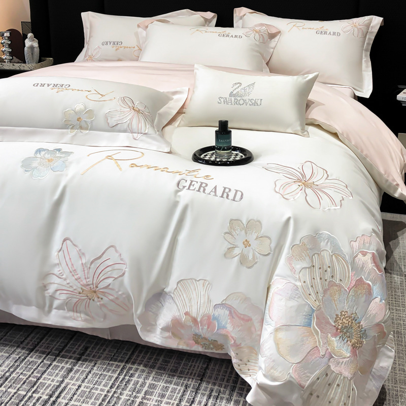 Главная страница > Категория А, 240 шт., длинноволокнистый хлопок, комплект из четырех предметов, сатиновый пододеяльник из чистого хлопка с вышивкой, простыни, приятные для кожи простыни