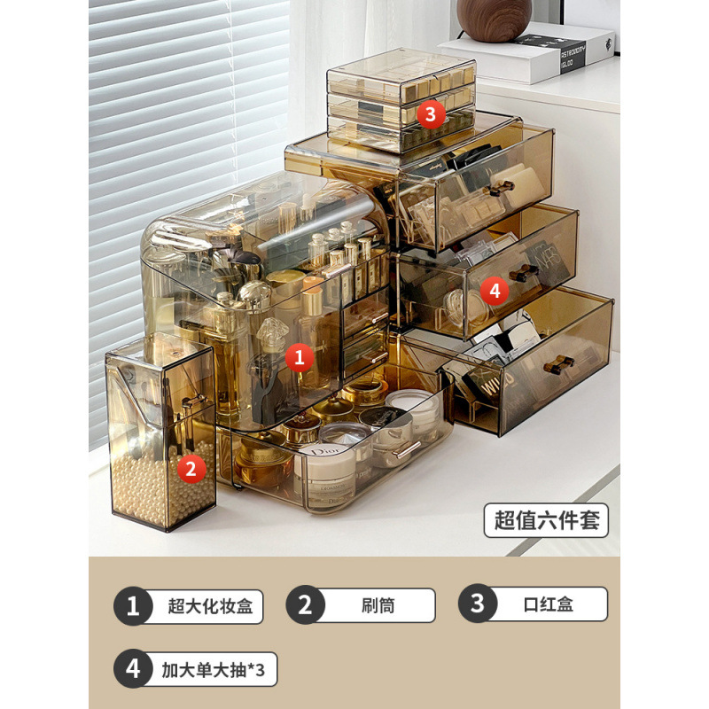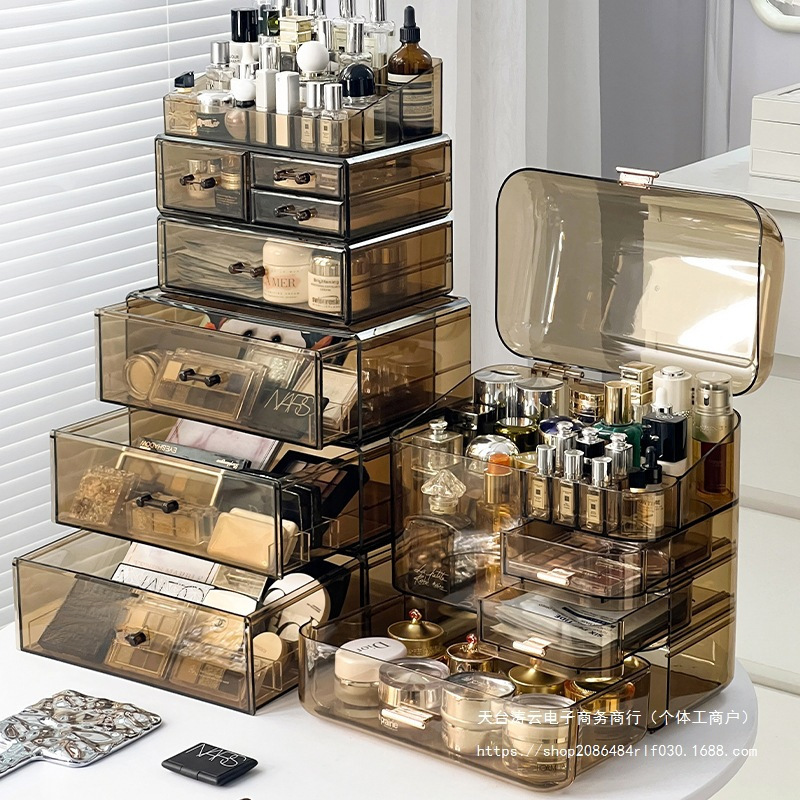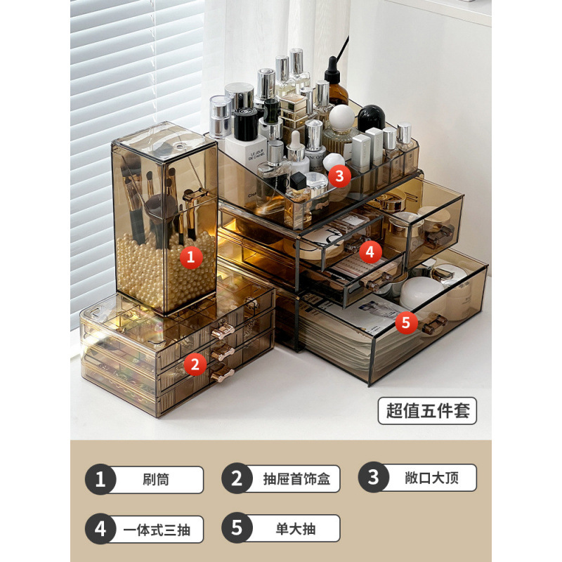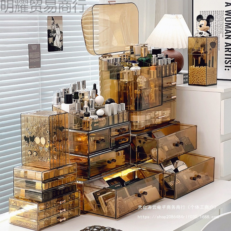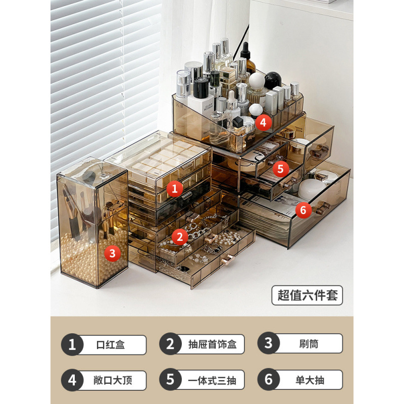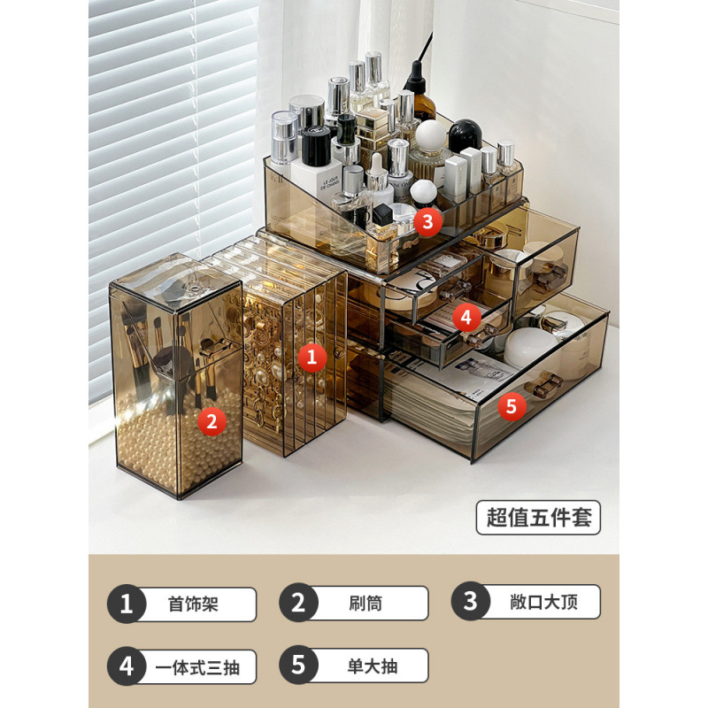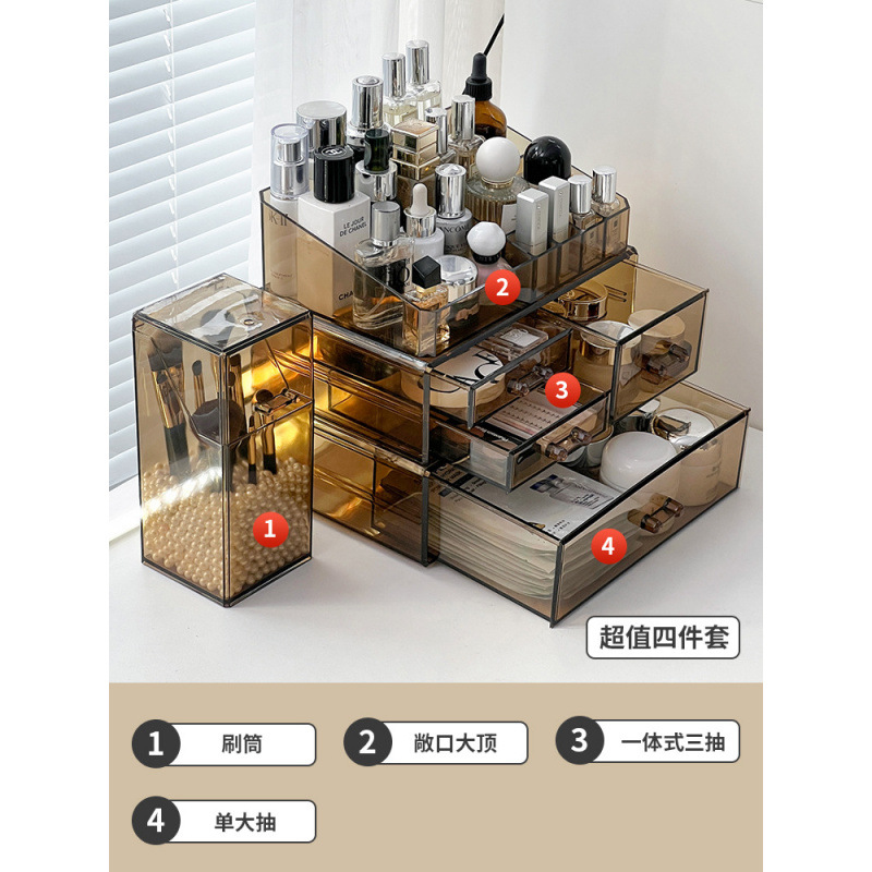 Акриловый ящик для хранения косметики, туалетный столик, средства по уходу за кожей, коробка для губной помады, бочонок для кистей для макияжа, настольная полка для хранения духов