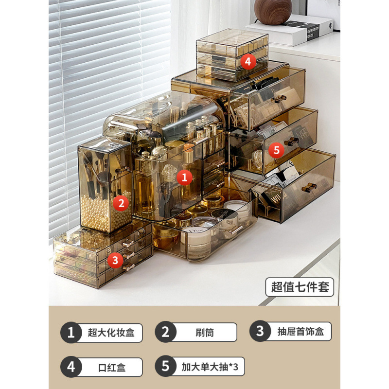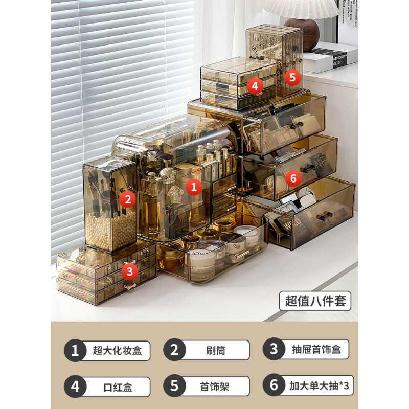 [Набор из восьми предметов] Косметическая коробка + увеличенный один большой ящик*3 + корпус кисти (с белым жемчугом) + шкатулка для драгоценностей с выдвижным ящиком + коробка для губной помады + подставка для украшений SF0183WW₳