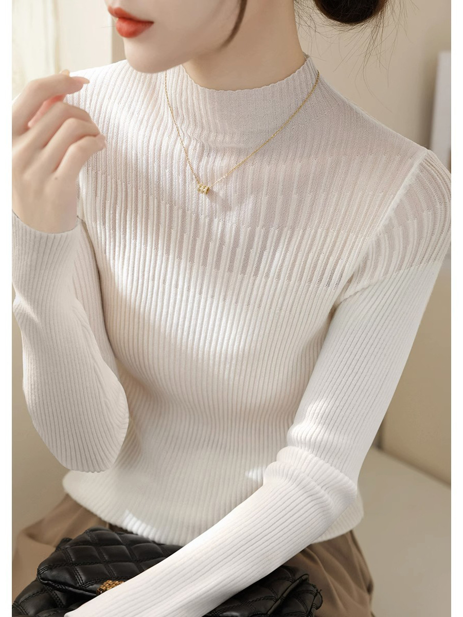 Главная страница > Весенне-осенний черный трикотажный топ с воротником-стойкой, новый высококачественный свитер с длинными рукавами из кружевной сетки, женская одежда