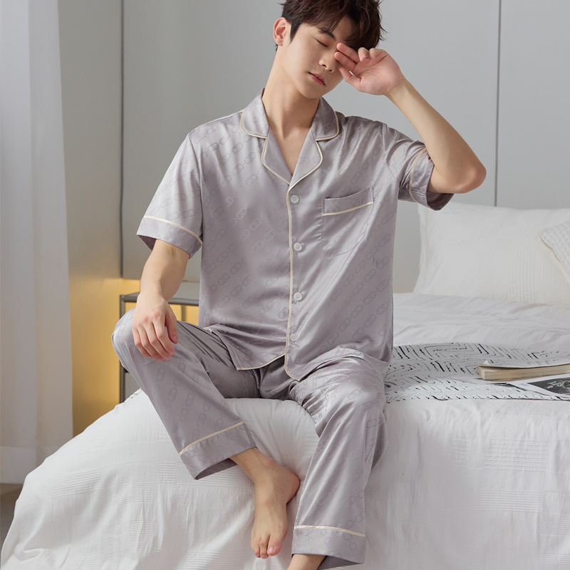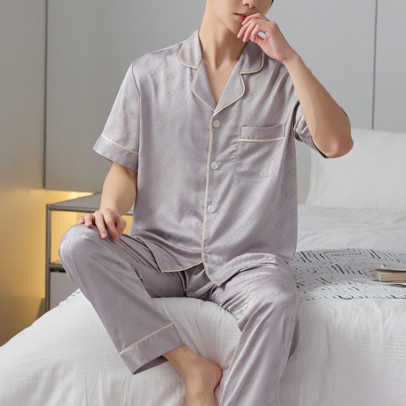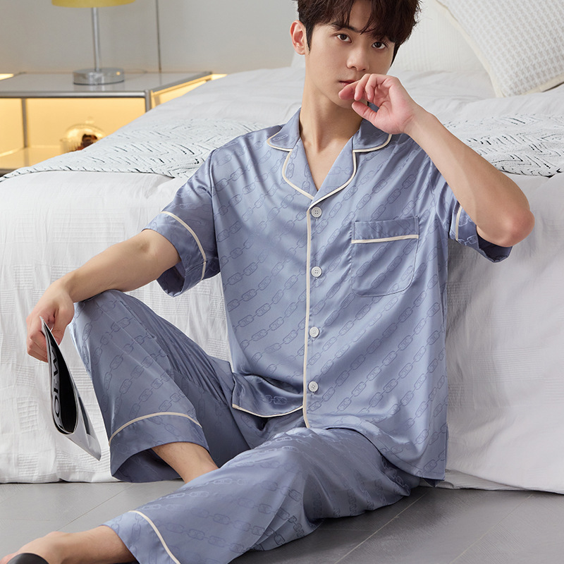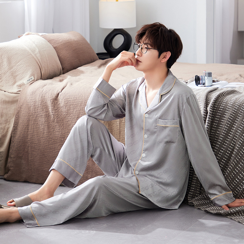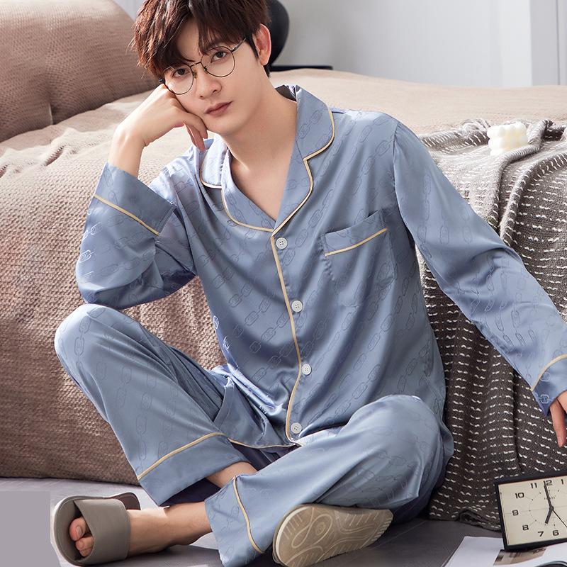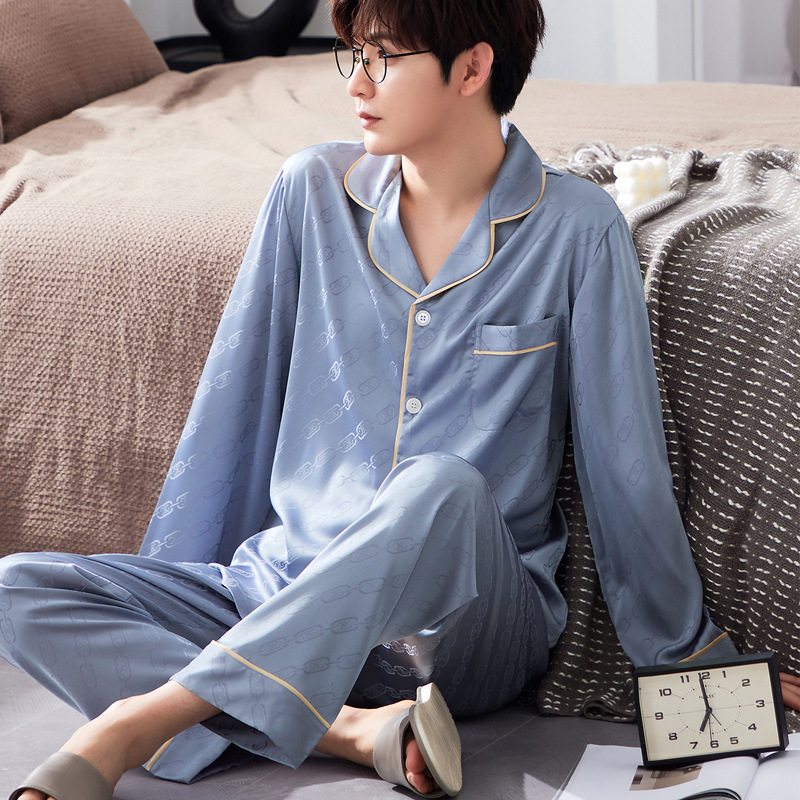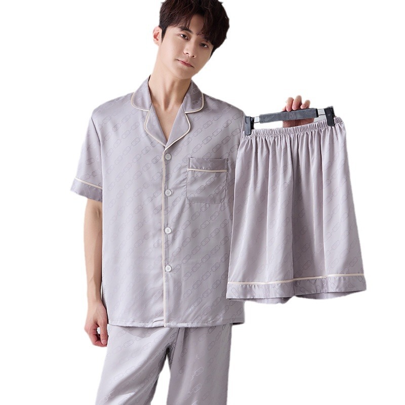 Главная страница > Мужской пижамный комплект из ледяного шелка: весенне-осенний, с длинным рукавом, летний, из трех предметов, жаккардовый, свободный, комфортный, тонкий, для дома