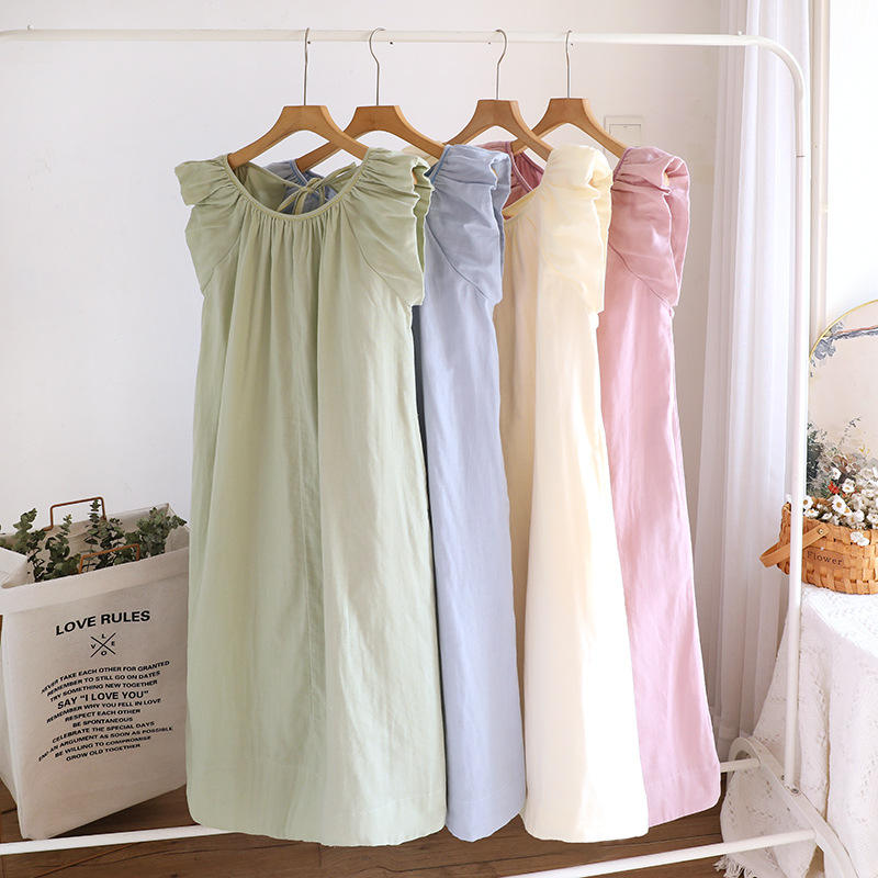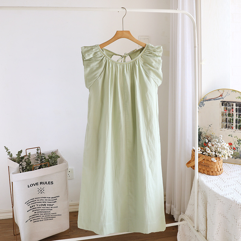 Летняя серия «Бриз», длинная юбка с маленькими летящими рукавами ~ зеленая