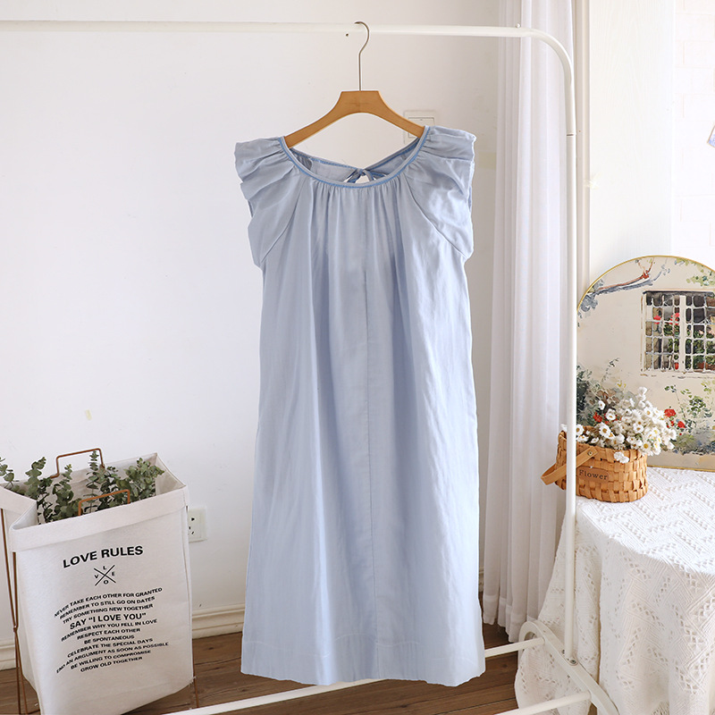 Летняя серия «Бриз», длинная юбка с маленькими летящими рукавами ~ синяя