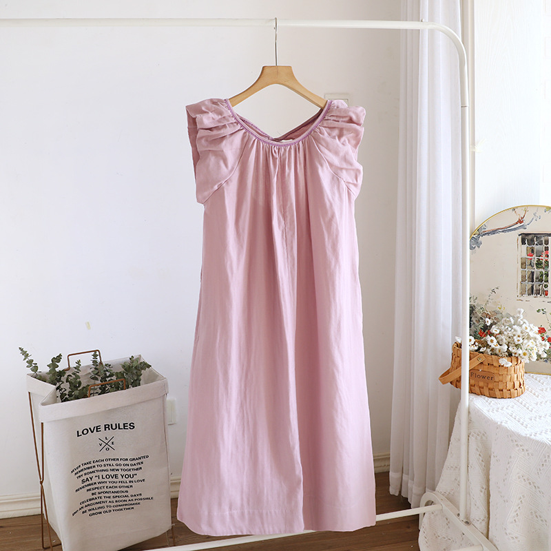 Летняя серия «Бриз», длинная юбка с маленькими летящими рукавами ~ розовая