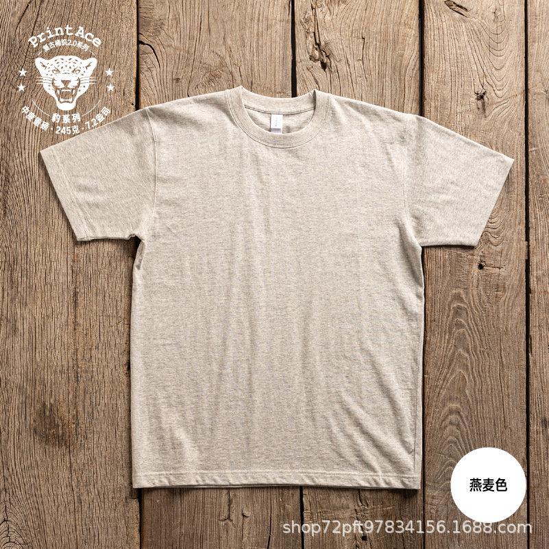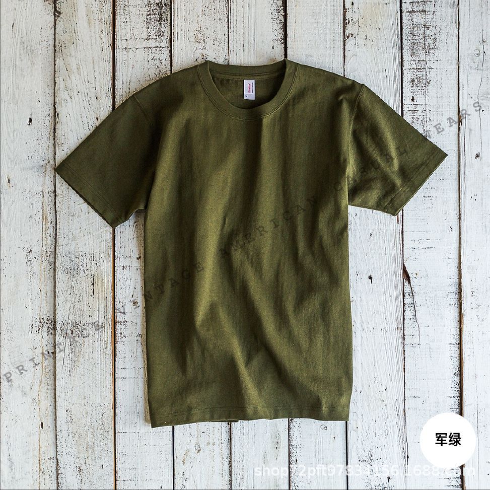 Мужская футболка из плотного хлопка в стиле ретро, американский крой, бесшовная вязка, круглый вырез, короткий рукав, цвет хаки, модель 5243