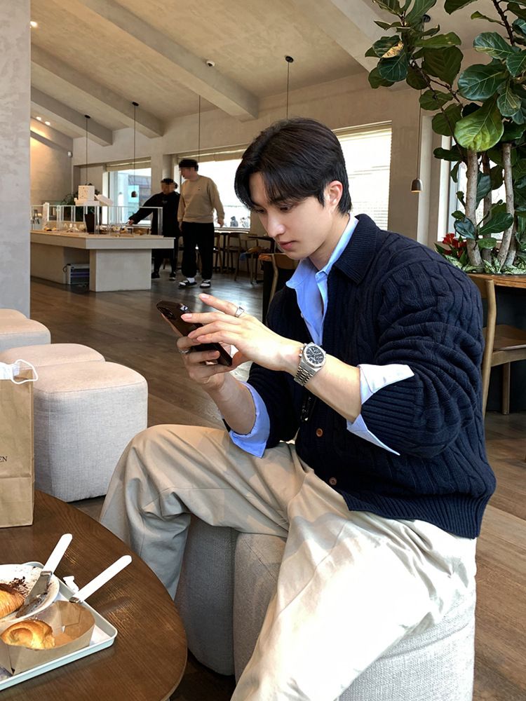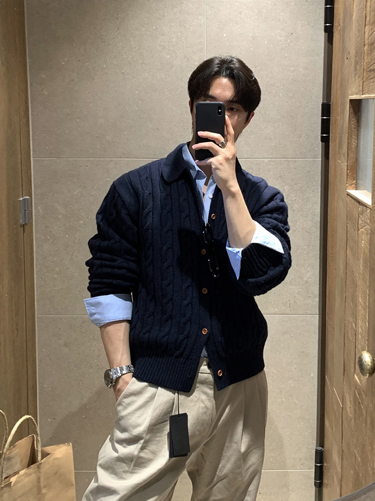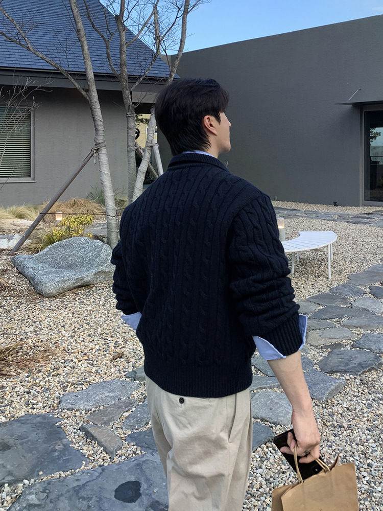 Главная страница > ASCLO Корейский мужской свитер, свитер, повседневное Свободное пальто в стиле ретро, Модный высококачественный узор из конопли в Корейском стиле