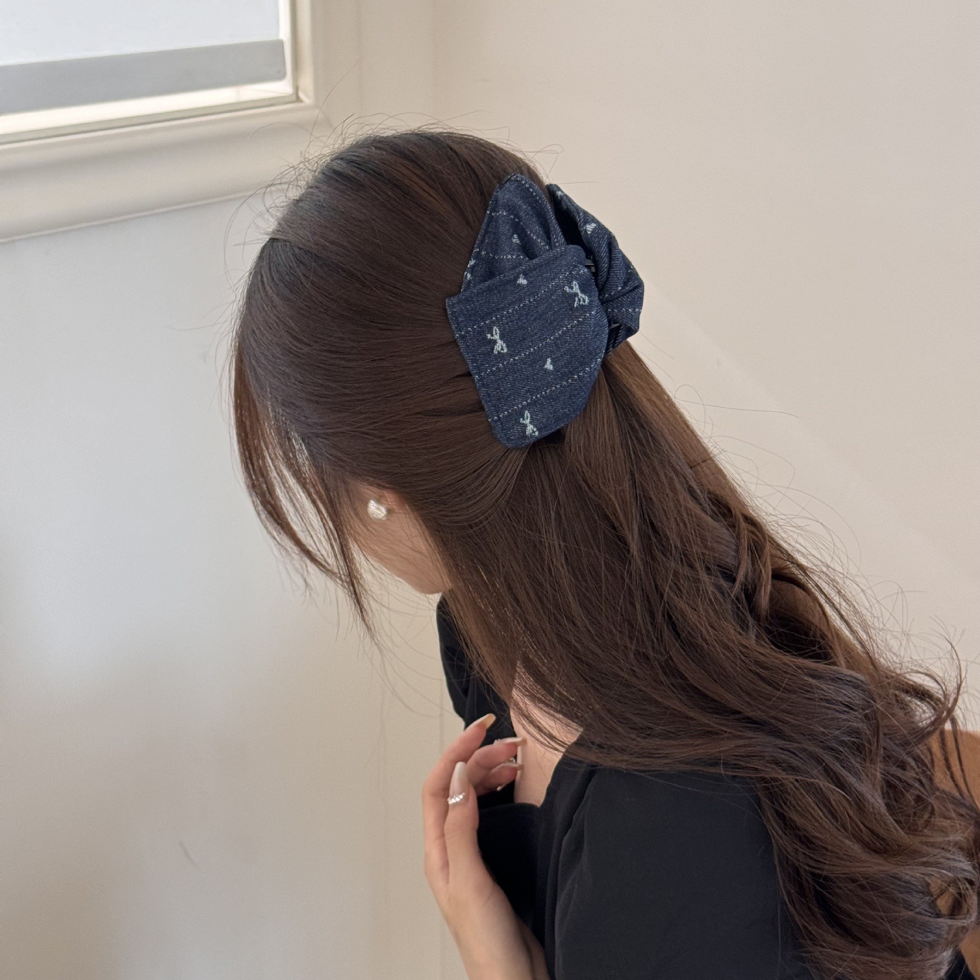 Главная страница > Заколка для волос Qimin Bow Denim Shell Clip, женская, 2025, новая, высококачественная, ретро-заколка в форме акулы
