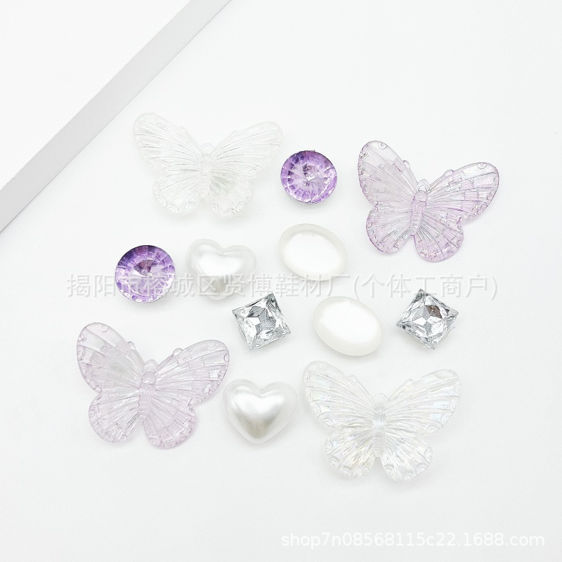 CJ-164 Фиолетовая бабочка со стразами (с кнопками для прямого использования)
