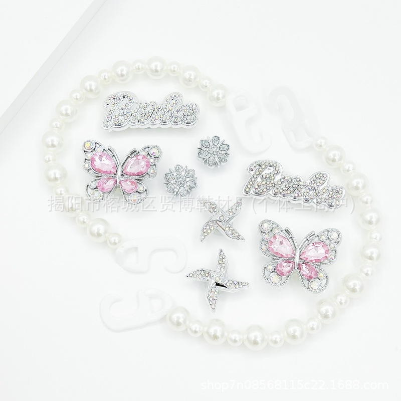 CJ-072 Жемчужная цепочка с розовой бабочкой и бриллиантами (с кнопками для прямого использования)
