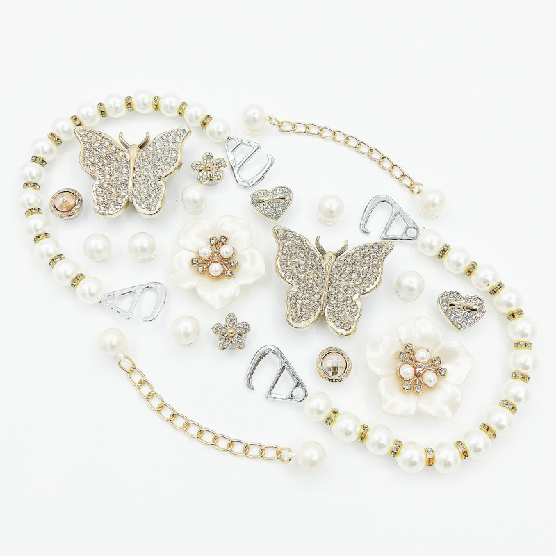 CJ-046 Набор из 18 предметов «Алмазный жемчужный цветок» (с кнопками для непосредственного использования)