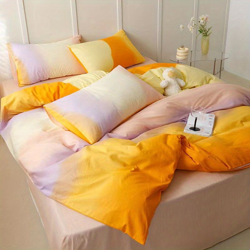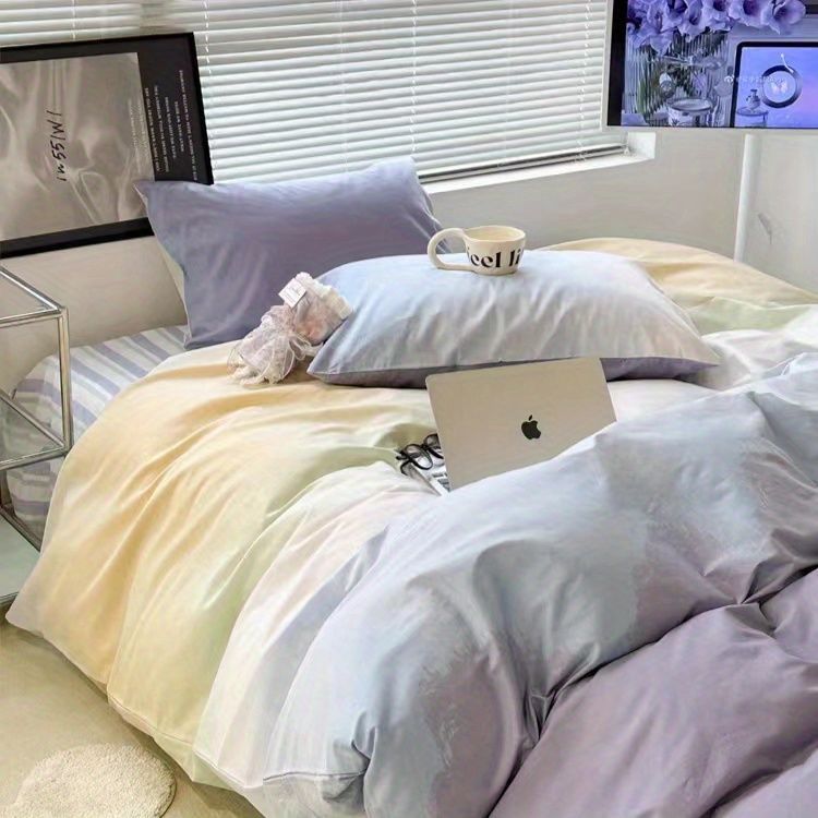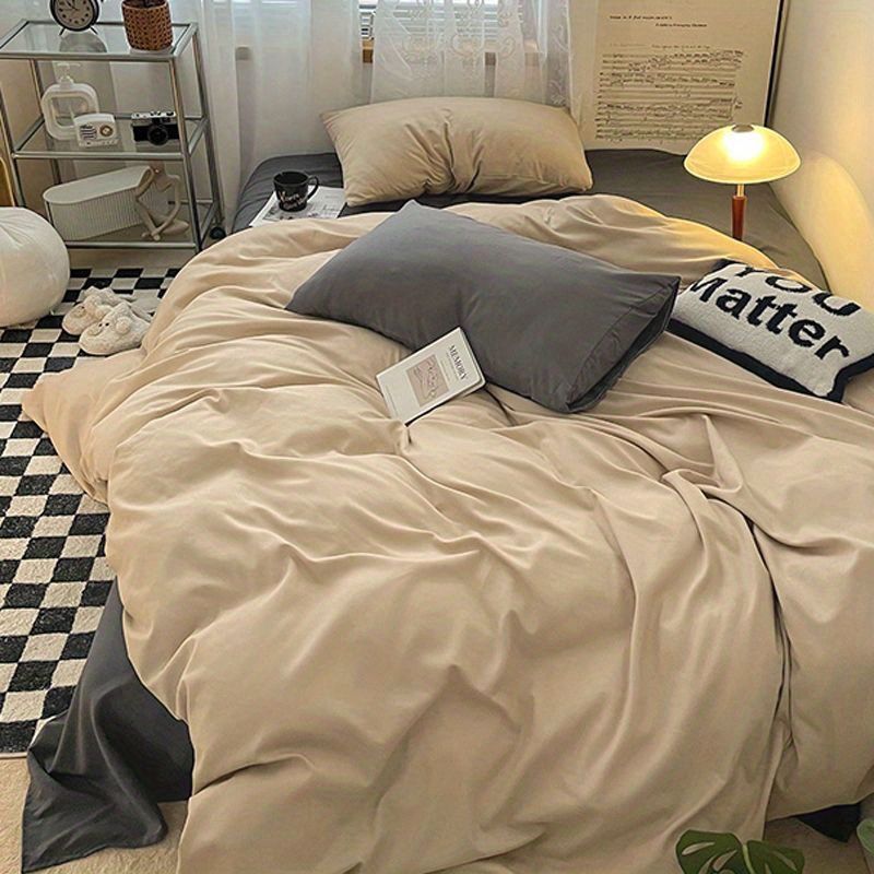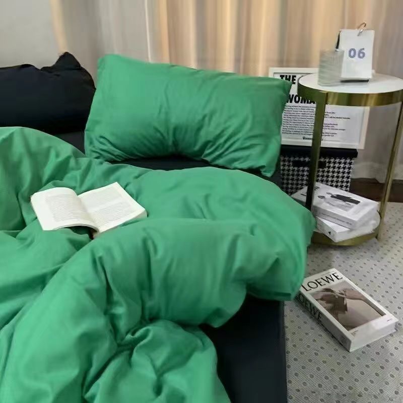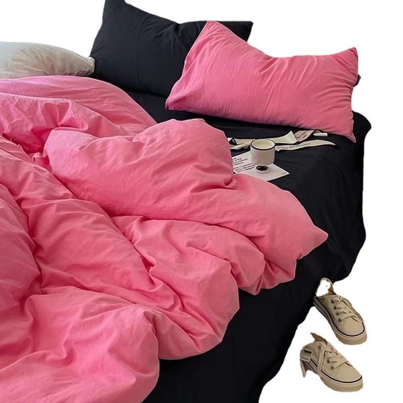 Хлопковая простыня с двойной стиркой в скандинавском стиле Пододеяльник из четырех частей Простая простыня Пододеяльник для общежития Постельное белье из трех частей