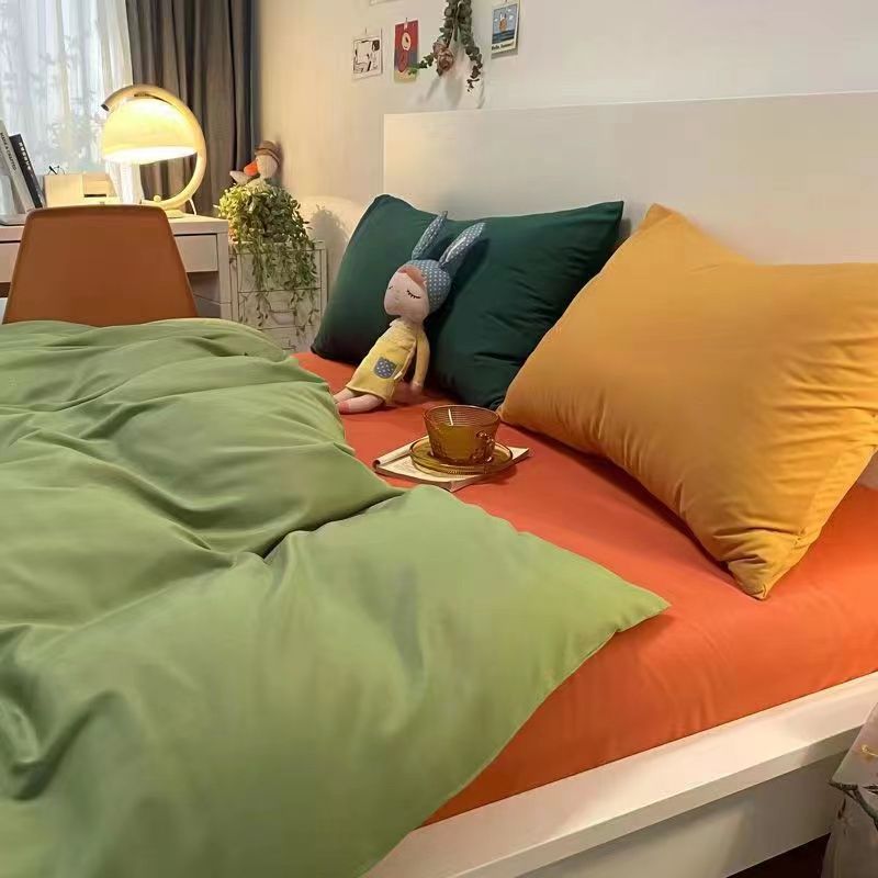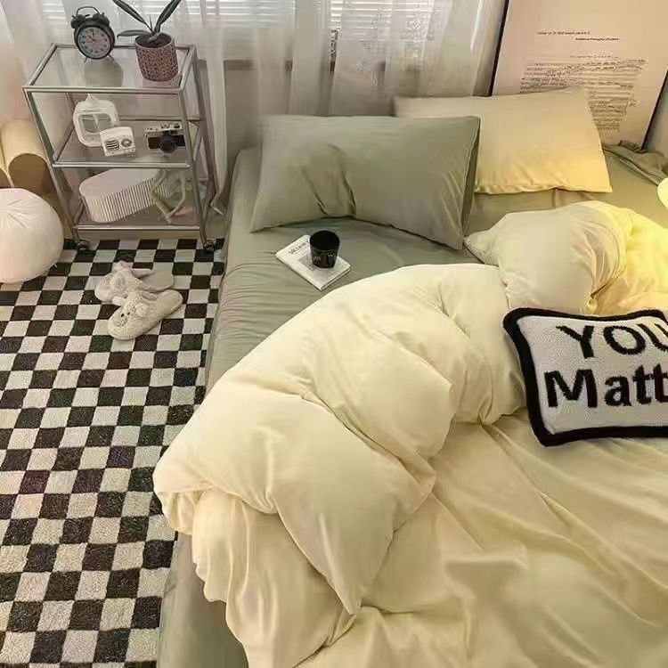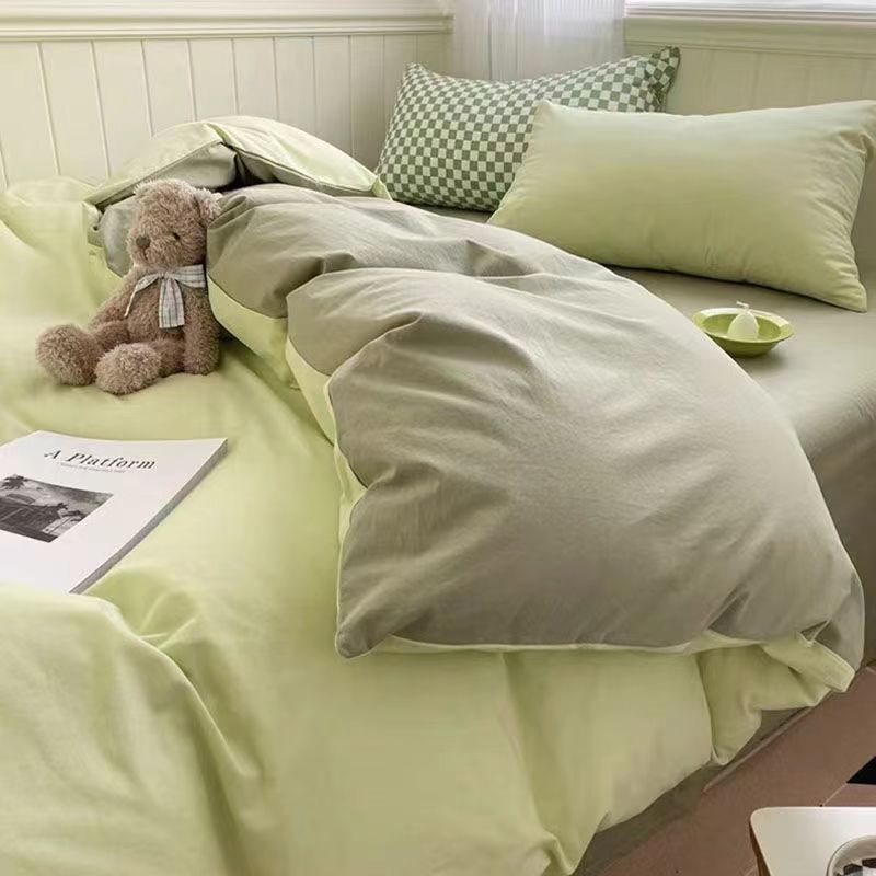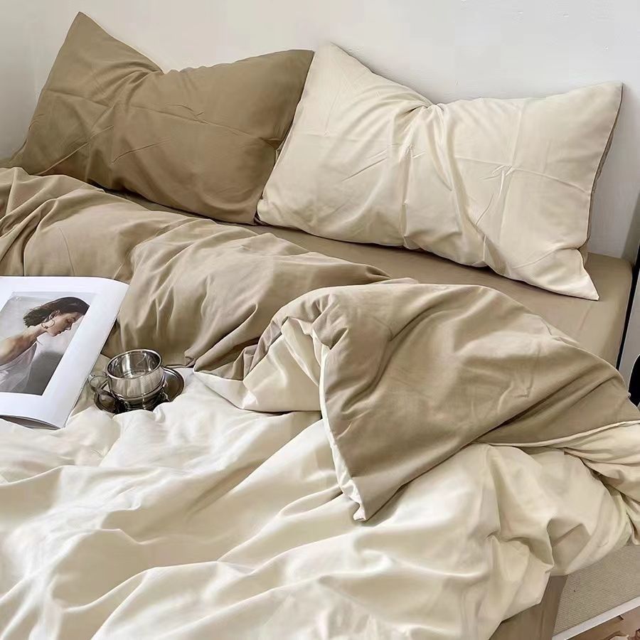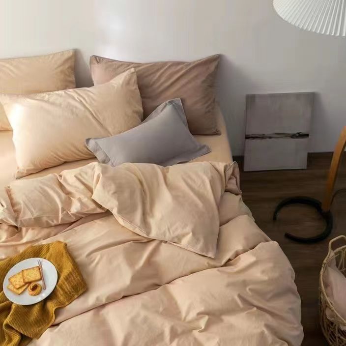 Главная страница > Хлопковая простыня с двойной стиркой в скандинавском стиле Пододеяльник из четырех частей Простая простыня Пододеяльник для общежития Постельное белье из трех частей