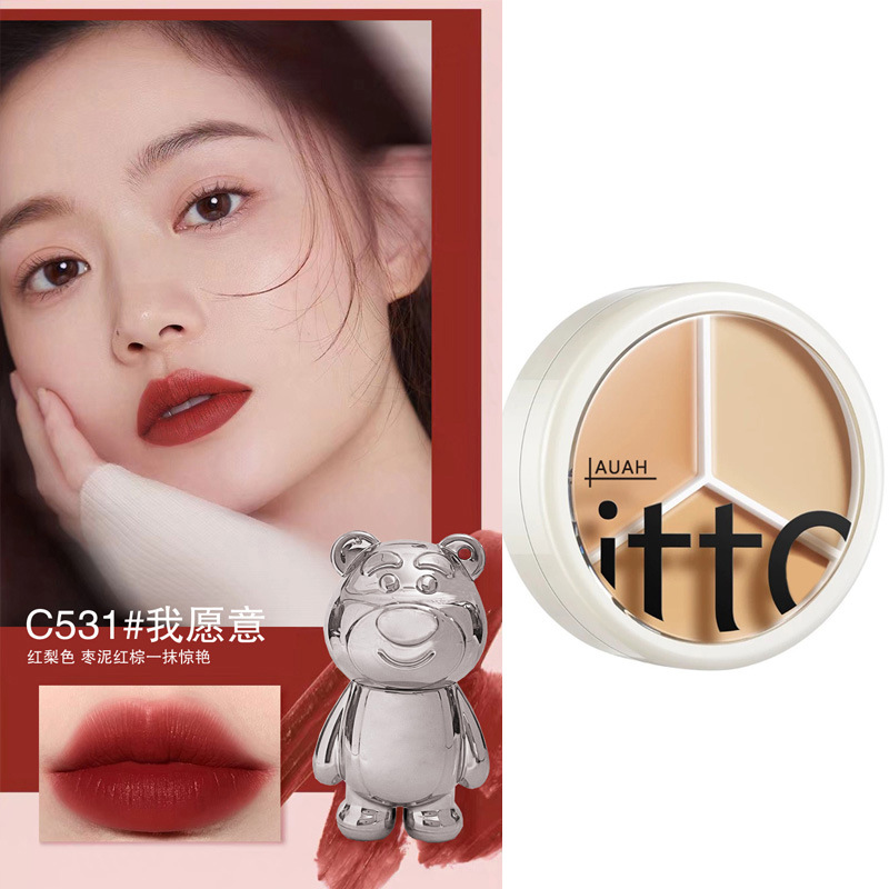 Трехцветный консилер + медвежья грязь для губ No3
