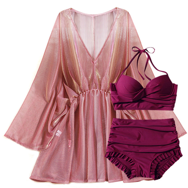 Купальник женский новый продвинутый сексуальный раздельный костюм из трех частей Pure Desire, Модный Купальник-бикини с разрезом, горячая весна