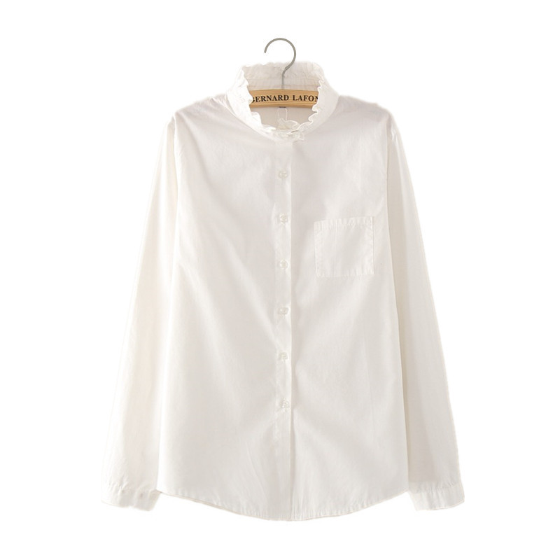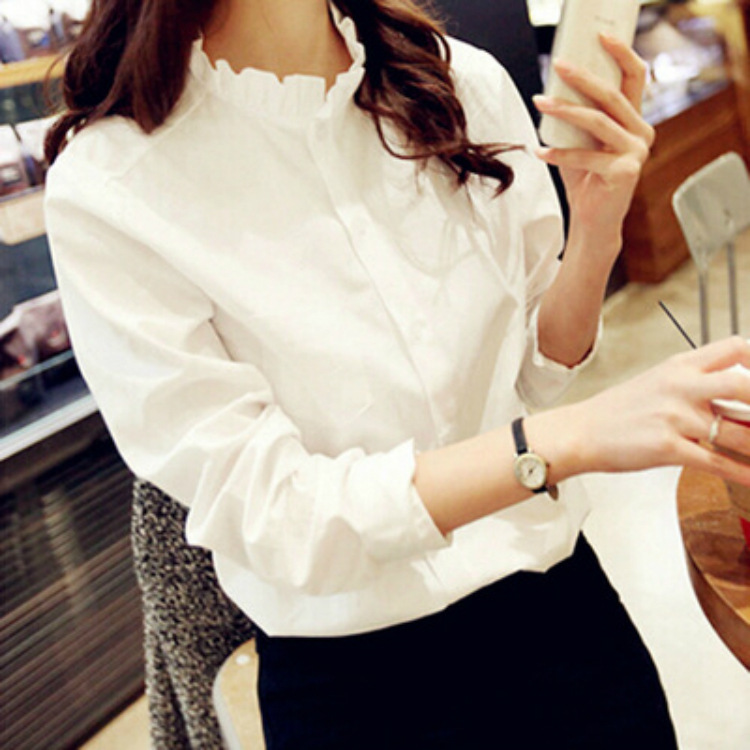 Главная страница > Трансграничная новинка 2025, элегантная женская рубашка в корейском стиле с белым грибком и воротником-стойкой, профессиональная рубашка с длинными рукавами, женский свободный топ