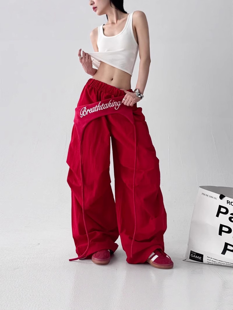 Главная страница > Модные многослойные красные брюки-парашюты для женщин, летние новые свободные повседневные длинные брюки для уличных танцев в стиле хип-хоп с широкими штанинами