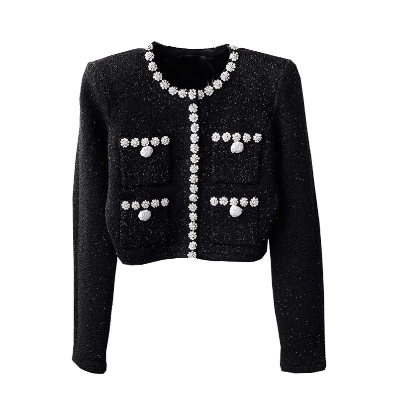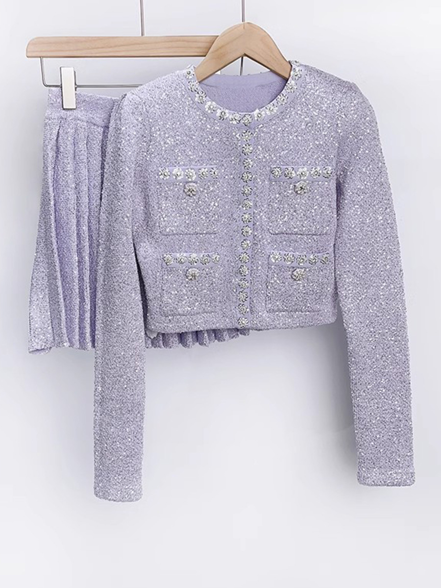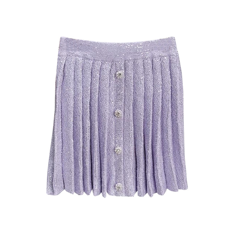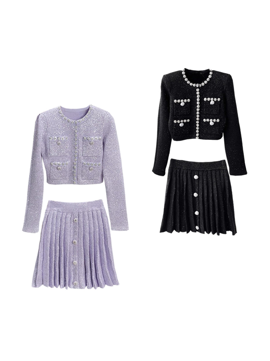 Главная страница > SP2023 Ранняя осень новый тяжелый промышленный маленький вязаный кардиган в стиле Шанель со стразами Женский костюм с Короткой Плиссированной Юбкой