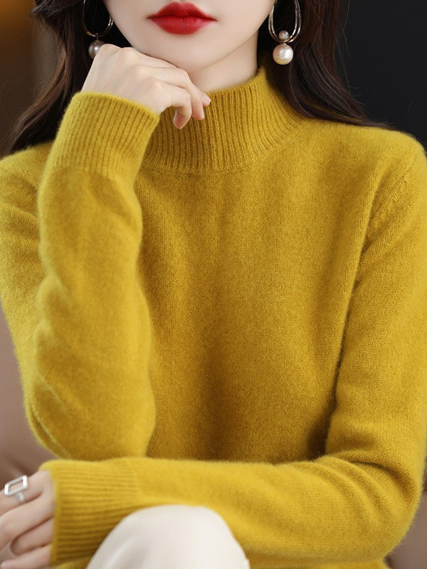 Главная страница > Новинка осенне-зимняя Базовая рубашка с воротником до локтя, Женский Универсальный приталенный вязаный утепленный свитер, верхняя одежда в Корейском стиле с длинным рукавом и средним воротником