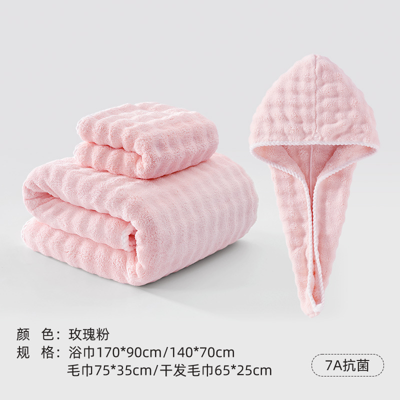 (розово-розовое) банное полотенце + полотенце для рук + полотенце для сушки волос [кремовый бархат с пузырьками, антибактериальный класс 7А]