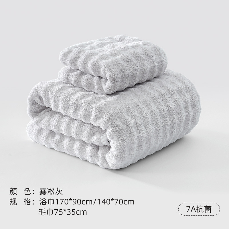 (Серый иней) Банное полотенце + Полотенце [Кремовый бархат с пузырьками, антибактериальный класс 7А]