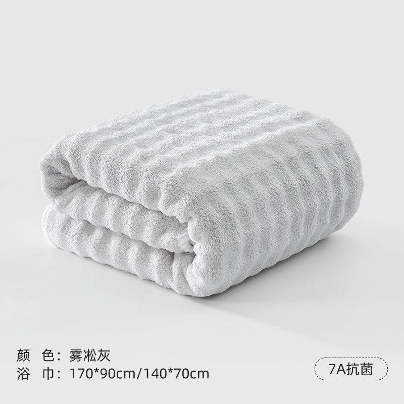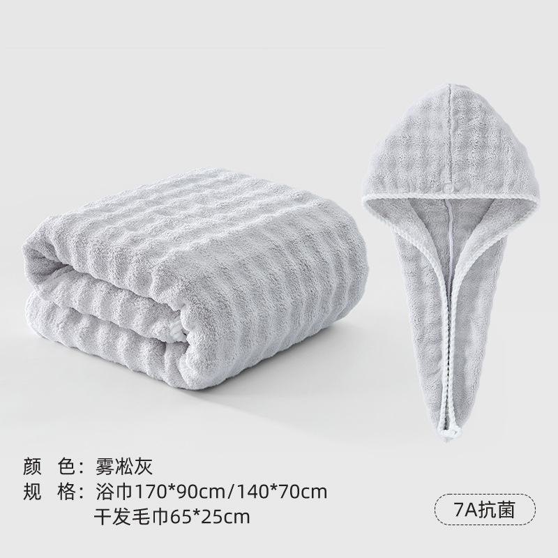 (Серый иней) Банное полотенце + Полотенце для сушки волос [Кремовый бархат с пузырьками, антибактериальный класс 7А]