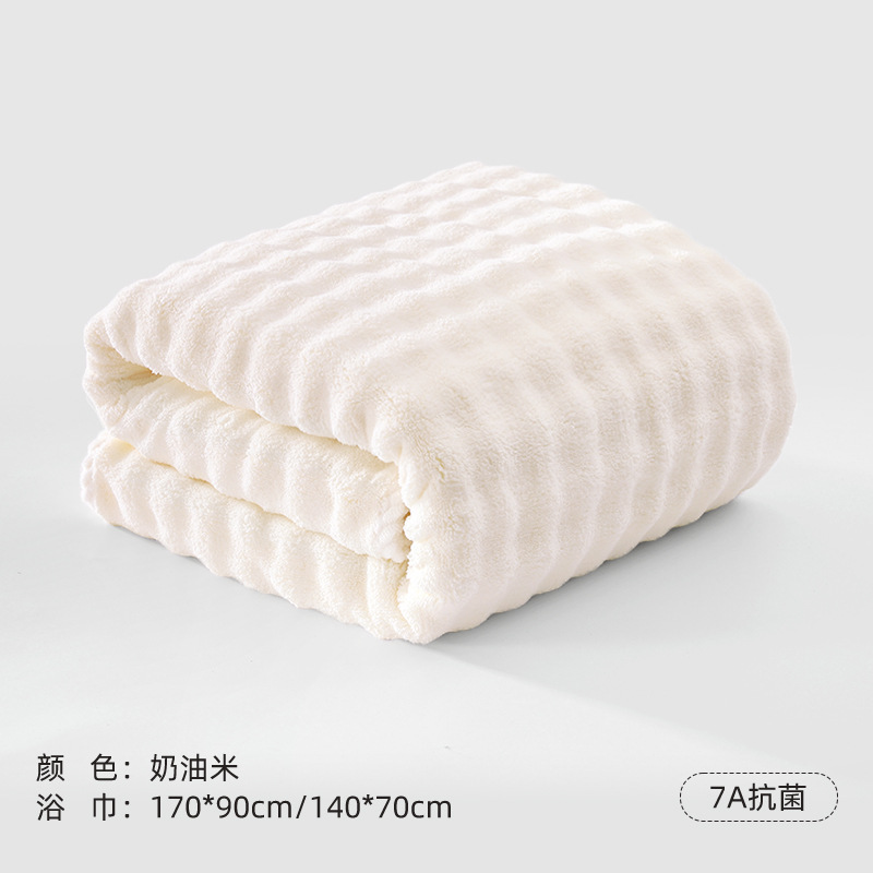 (Кремовый рис) Банное полотенце + Полотенце [Кремовый бархат с пузырьками, антибактериальный класс 7А]