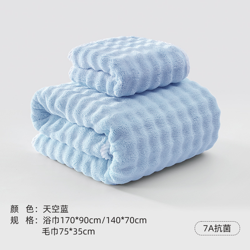 (Небесно-голубой) Банное полотенце + Полотенце [Кремовый бархат с пузырьками, антибактериальный класс 7А]