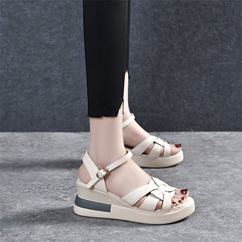 Главная страница > Женские туфли на танкетке с перекрестной тканой пряжкой, модные сандалии для кексов, повседневные сандалии для внешней торговли со скрытым каблуком больших размеров