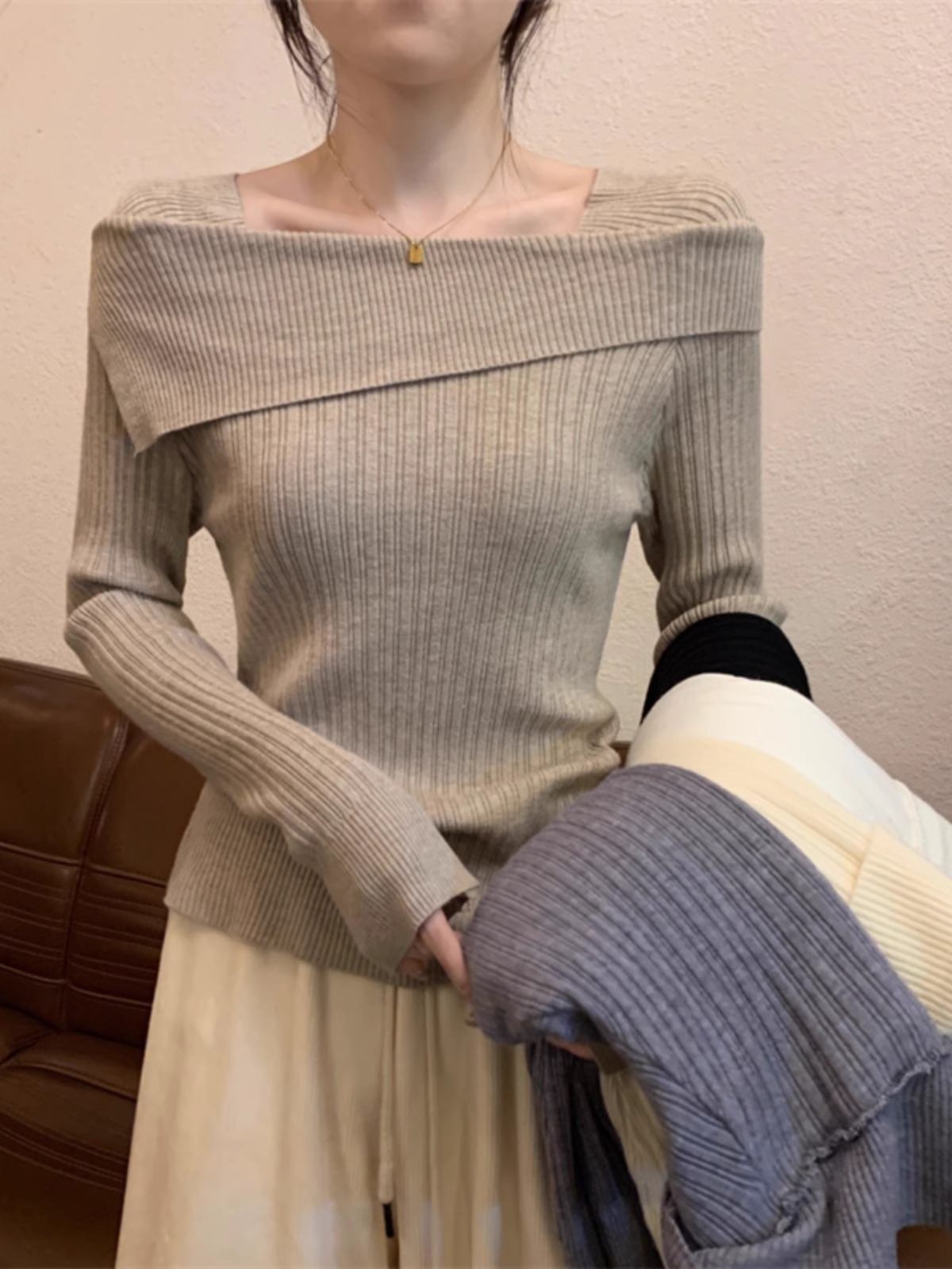 Главная страница > Дизайнерский трикотажный свитер женский тонкий осенний и зимний новый нижний свитер