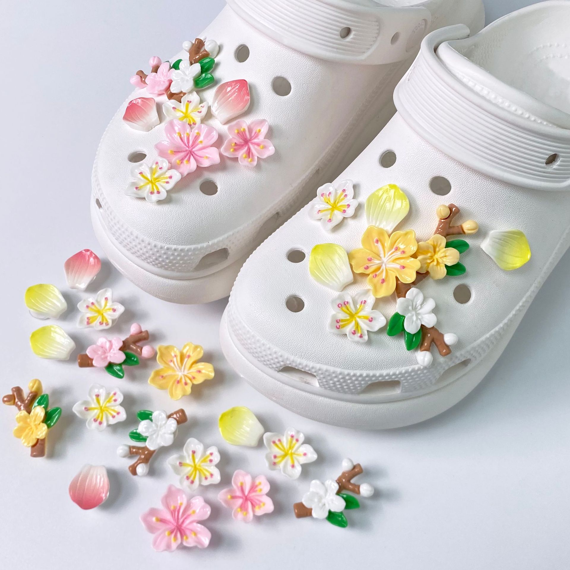 Желтые и розовые цветы персика [16 штук, застежка]#Обувь в комплект не входит]