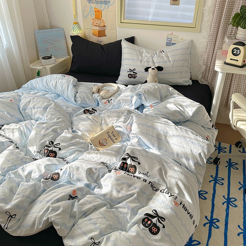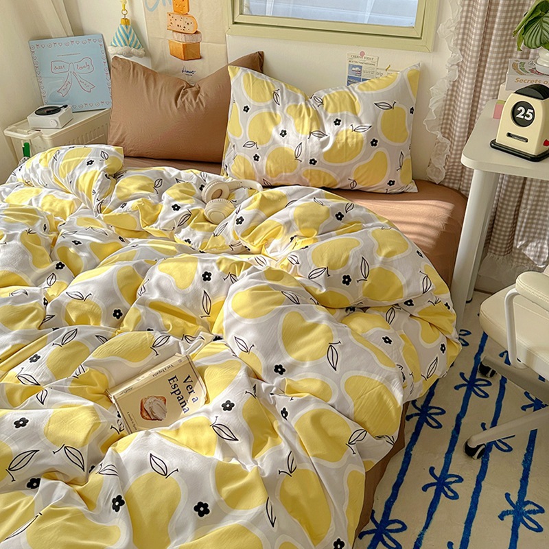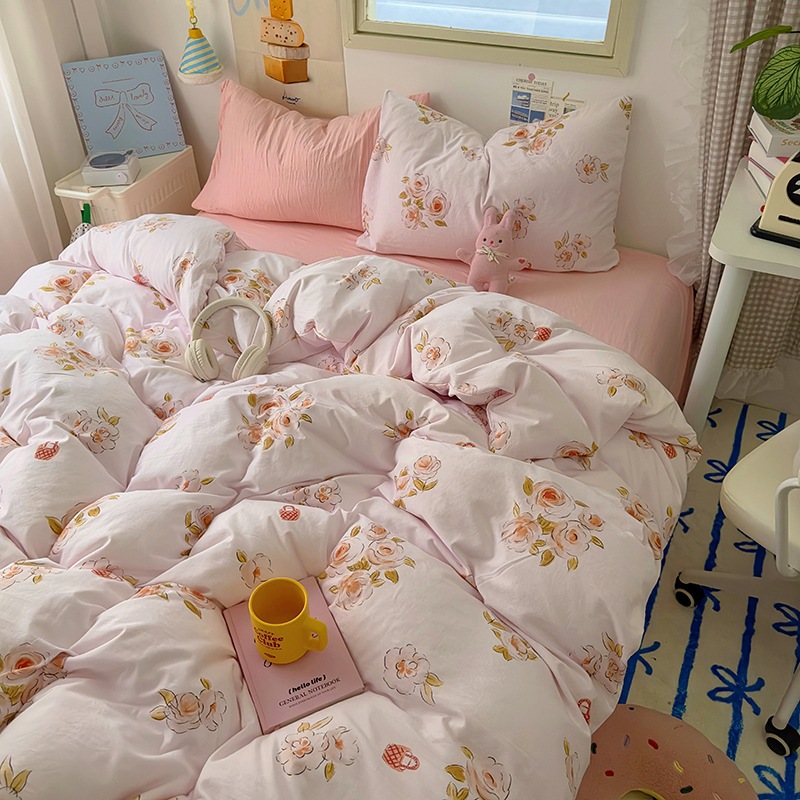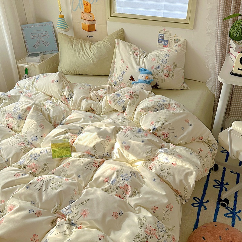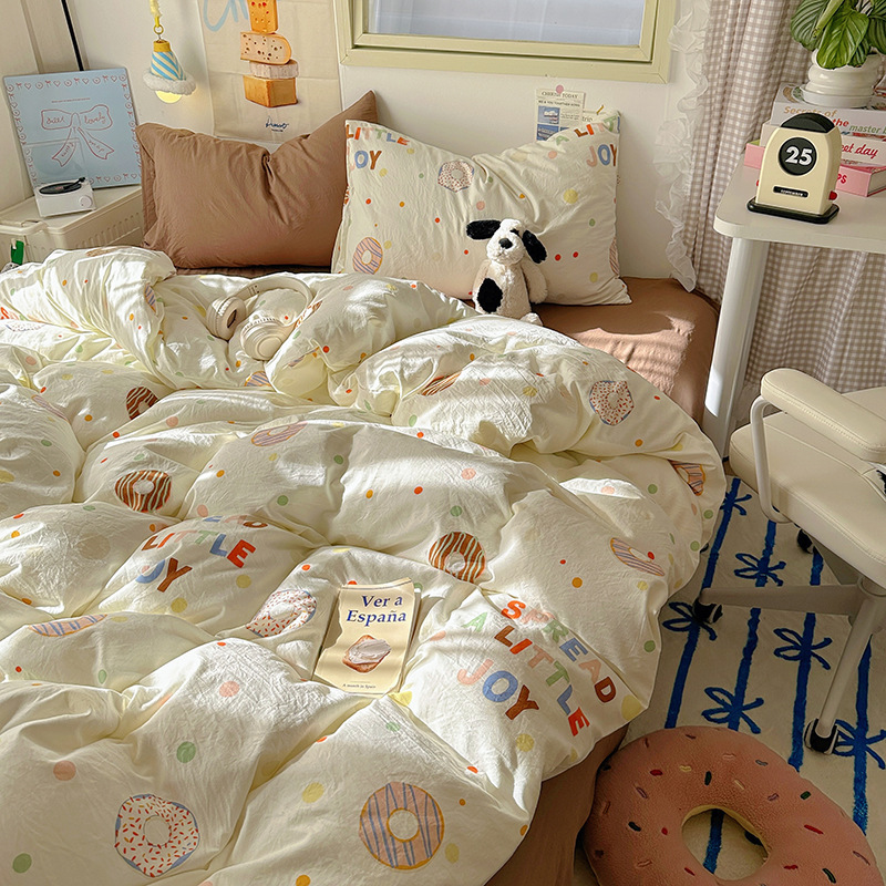 Категория: комплект из четырех предметов из стираного хлопка для мамы и ребенка в кремовом стиле, маленькие свежие простыни из чистого хлопка, пододеяльник, постельное белье