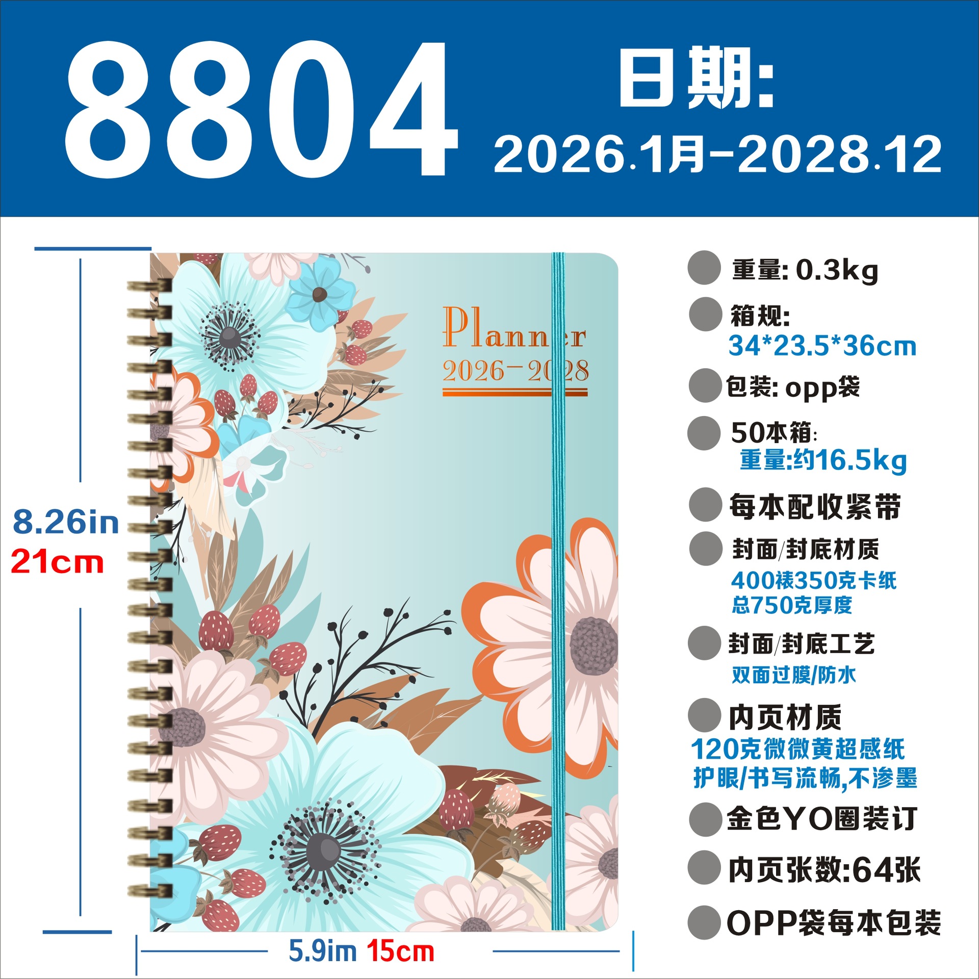 Ежедневник-планер Qi Meijia на 2026 год, английский, спиральный, для трансграничной торговли