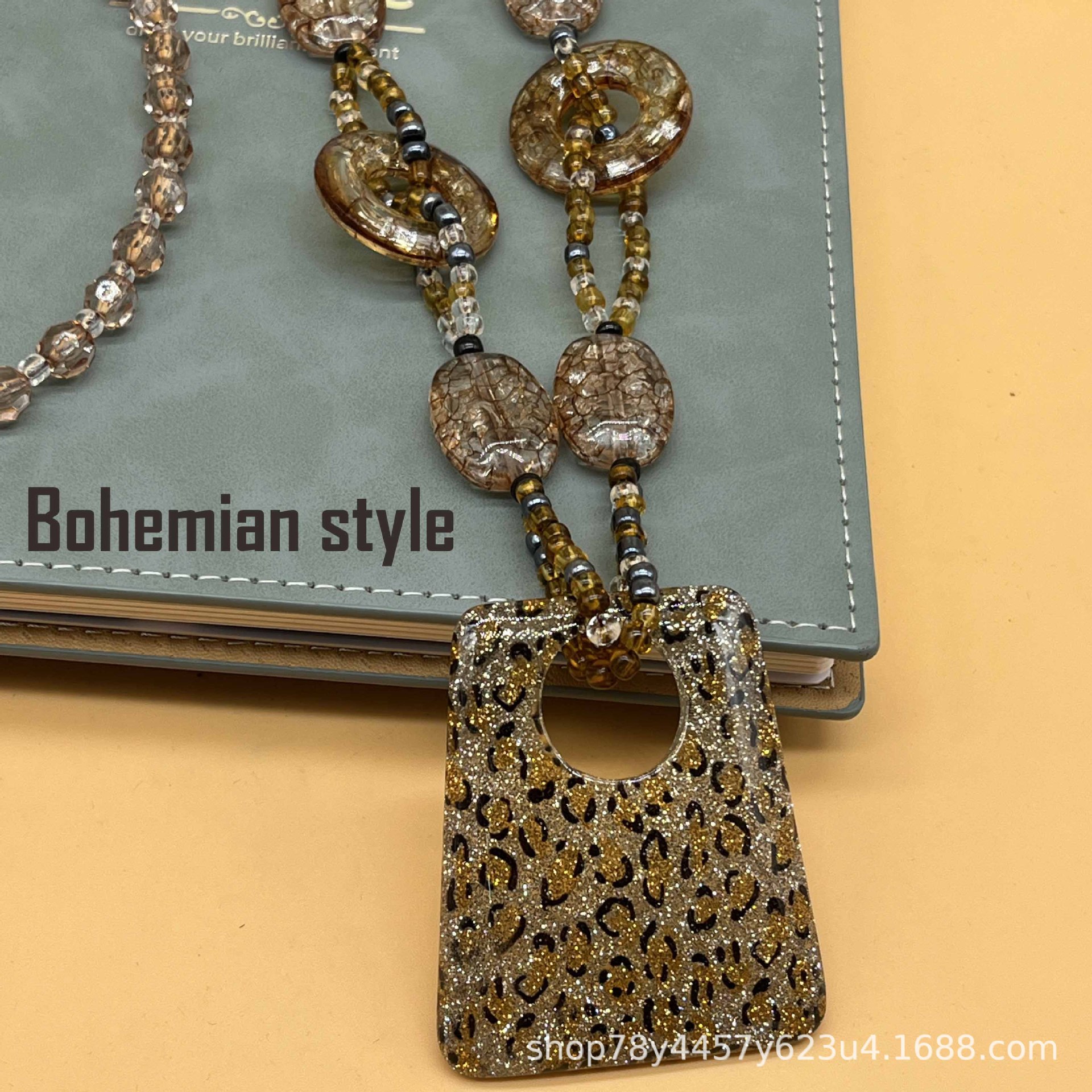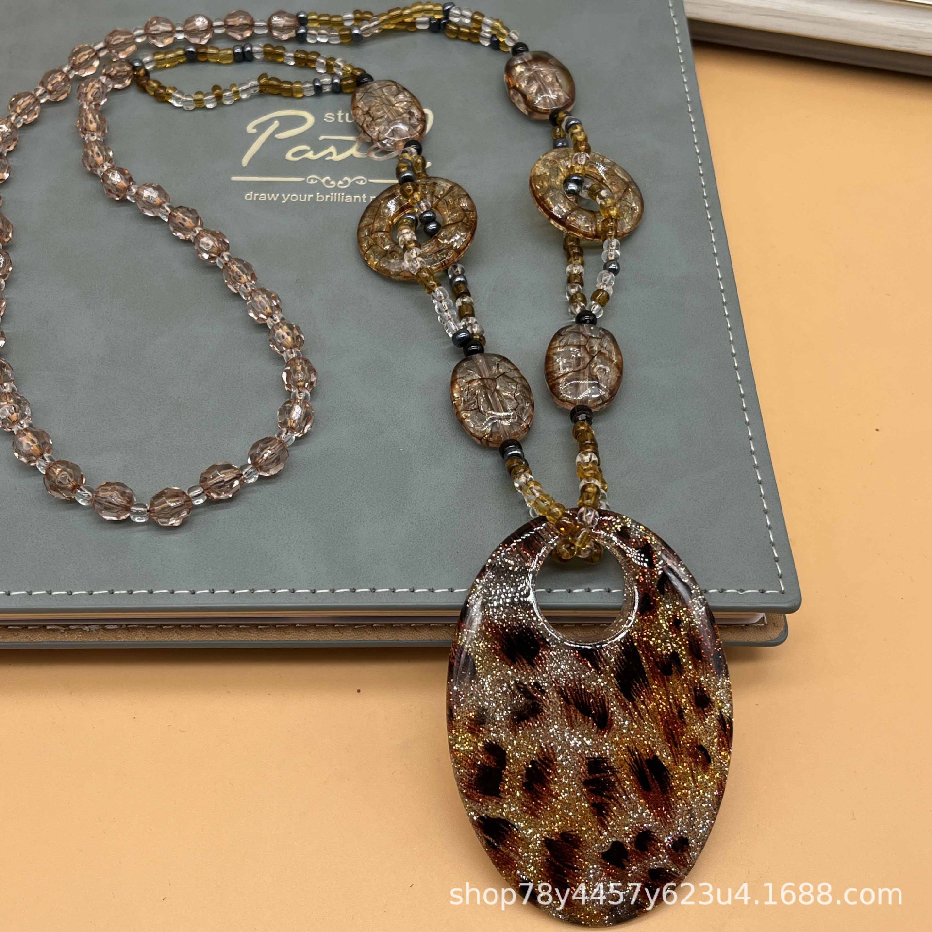 Длинное ожерелье в стиле бохо с леопардовым принтом, круглое ожерелье из смолы с леопардовым принтом, цепочка для свитера, этнический стиль, модное ожерелье для трансграничной торговли