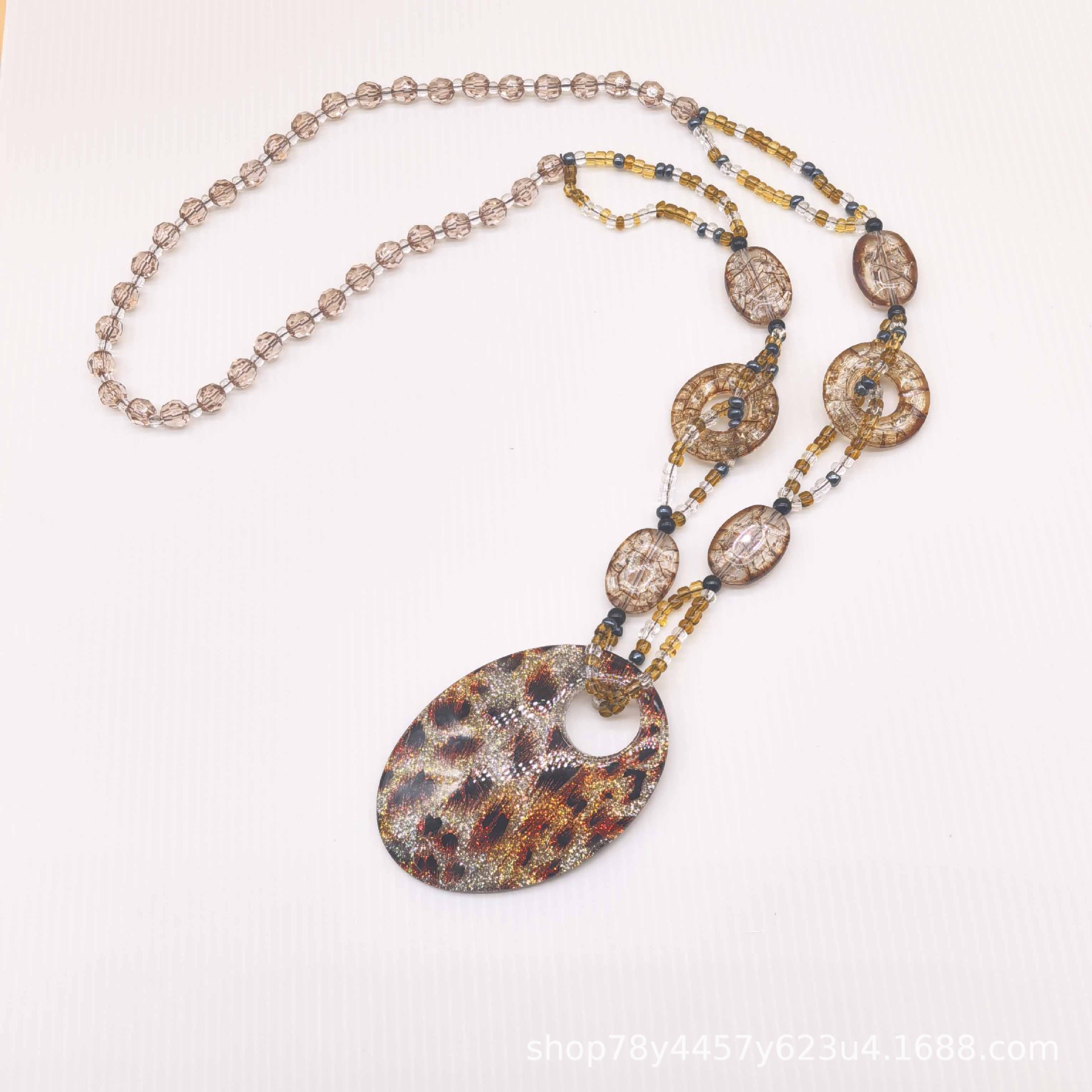 Главная страница > Длинное ожерелье в стиле бохо с леопардовым принтом, круглое ожерелье из смолы с леопардовым принтом, цепочка для свитера, этнический стиль, модное ожерелье для трансграничной торговли