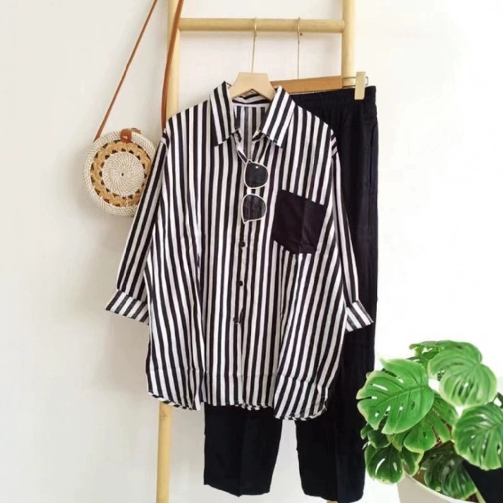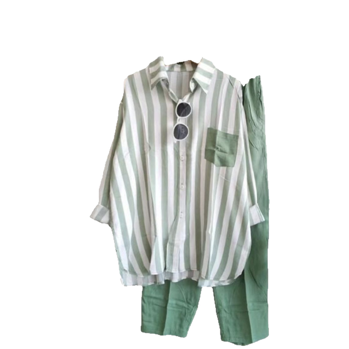 Главная страница > Внешняя торговля 2023 трансграничный женский летний толстый MM модный Свободный Тонкий удобный костюм в полоску для отдыха больших размеров