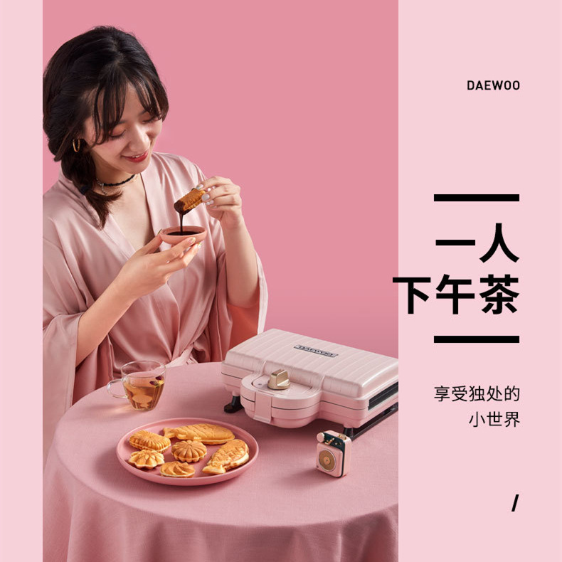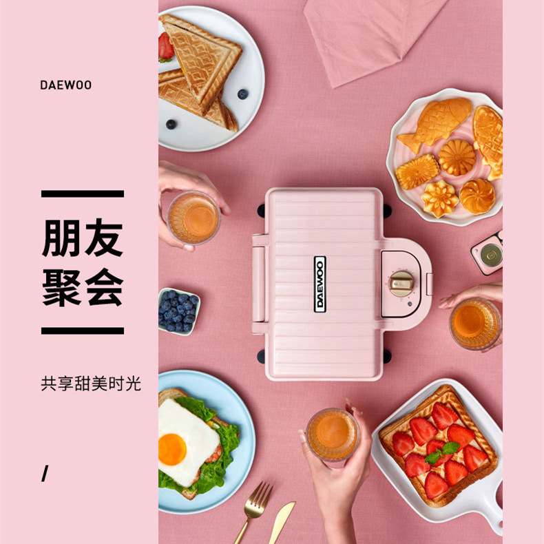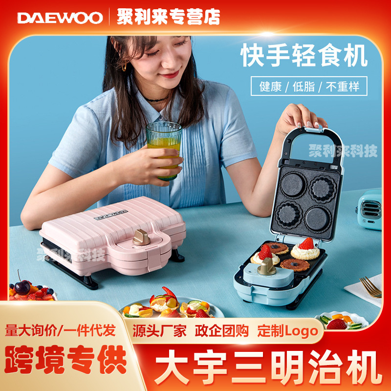 Электрическая сковорода для блинов Daewoo из Южной Кореи, бытовая машина для завтрака с двусторонним нагревом, машина для сэндвичей, машина для легкой еды, съемная и моющаяся вафельница