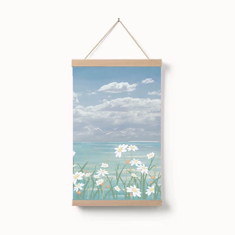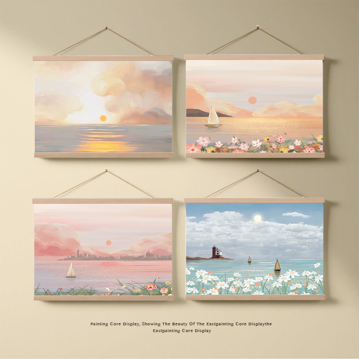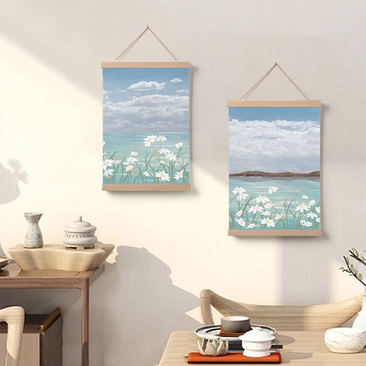 Домашний теплый свиток из цельного дерева, ткань, подвесная картина, гостиная, спальня, украшение стены, счетчик, блокировка, декоративная живопись, вид на море