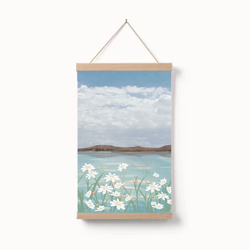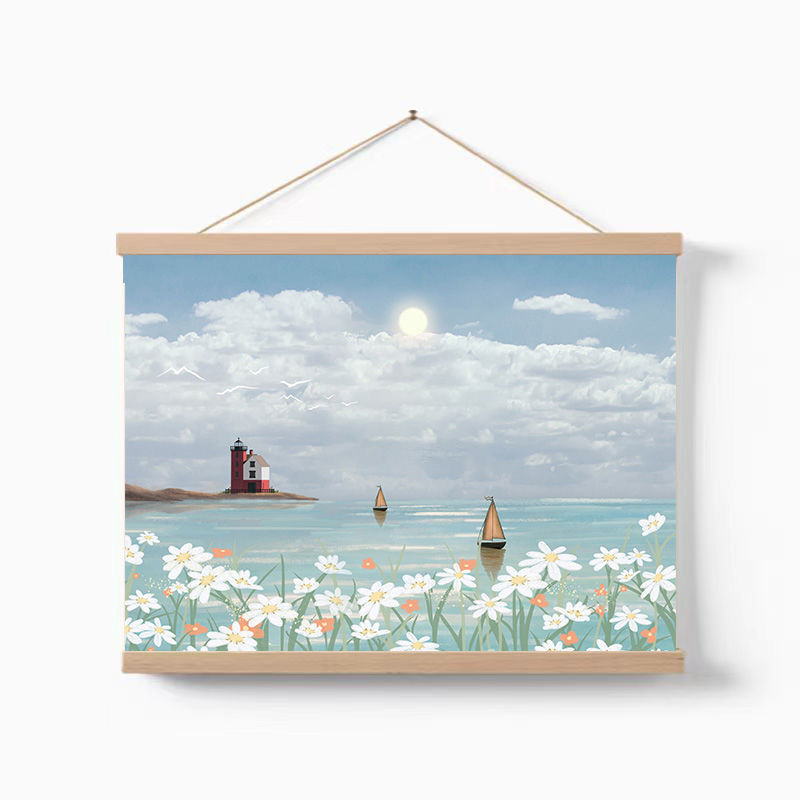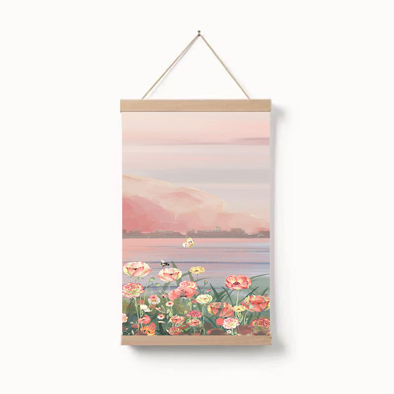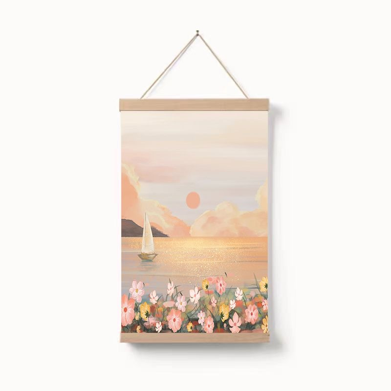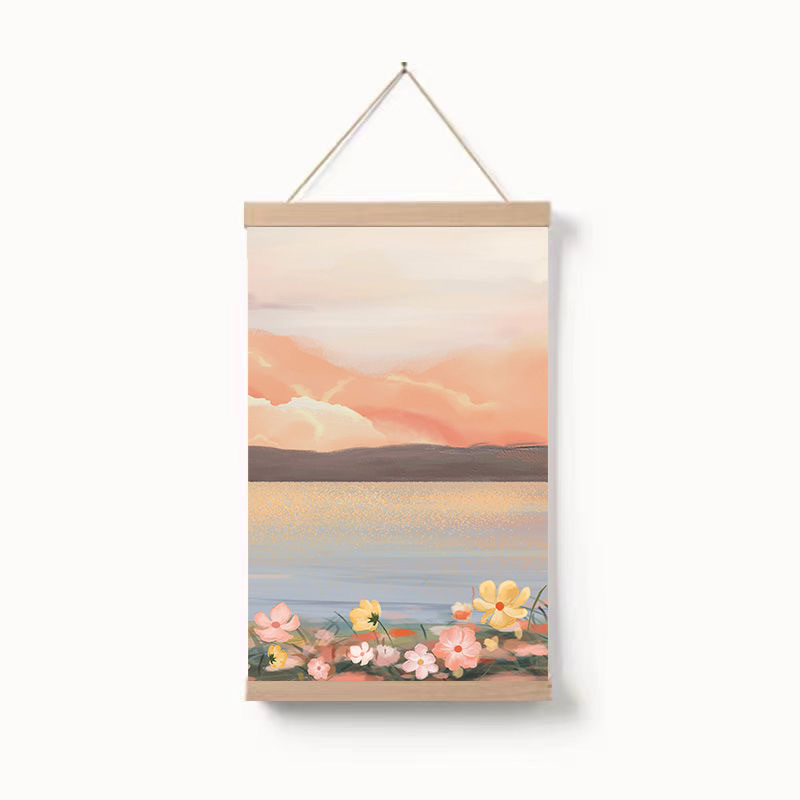 Домашний теплый свиток из цельного дерева, ткань, подвесная картина, гостиная, спальня, украшение стены, счетчик, блокировка, декоративная живопись, вид на море