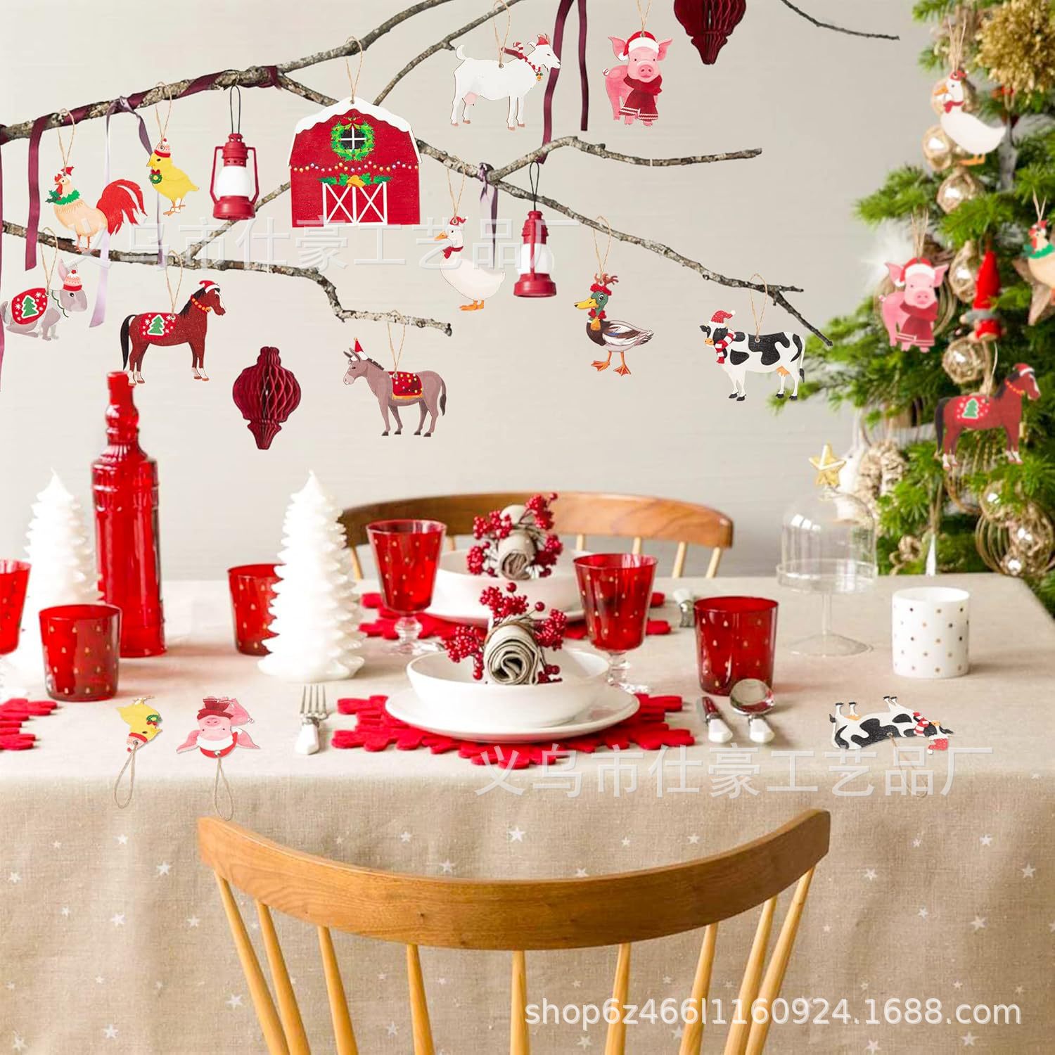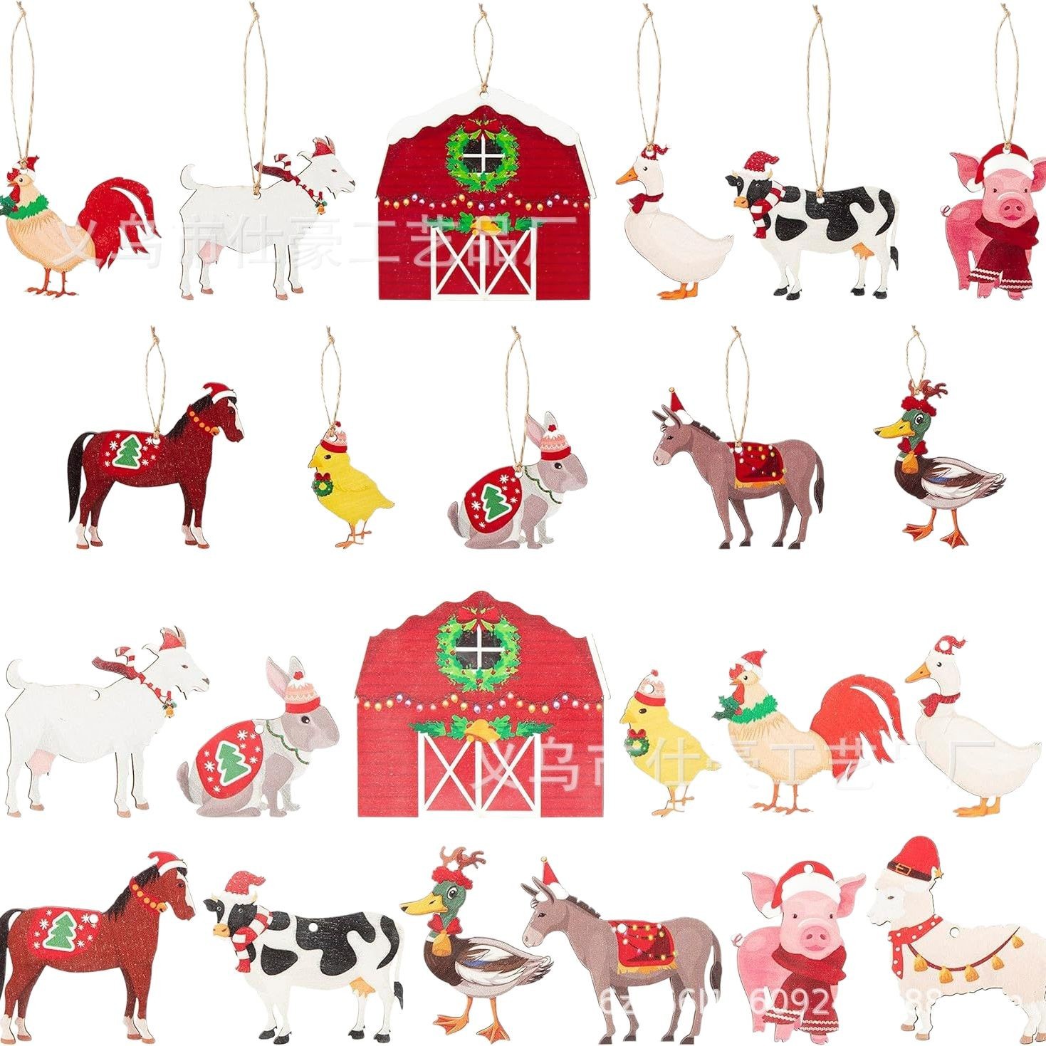 Новые товары пересекающие границы 37 штук Рождественские фермы животных висят деревянные украшения елки украшения, деревенский фермерский фестиваль